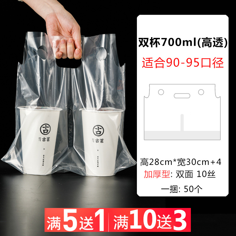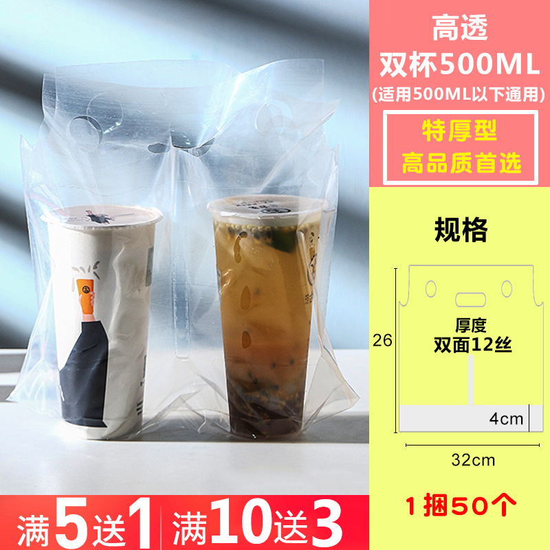 우유 티백 포장 백 테이크 아웃 휴대용 일회용 더블 컵 싱글 컵 4 컵 가방 농축 비닐 봉투 로고 인쇄스토어 가기
