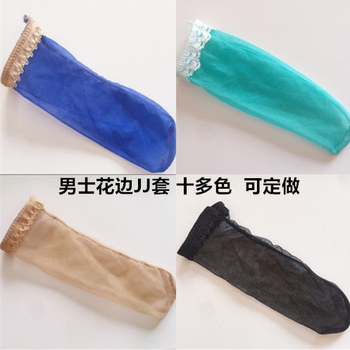 재미있는 실크 스타킹 남성용 레이스 JJ 세트 투명 초박형 남성용 자위 제품 레이스 커버