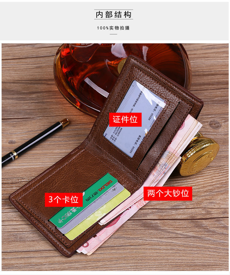 재고 복고풍 스타일 짧은 지갑 남성 지갑 카드 가방 얇은 가죽 가방 학생 청소년 지갑스토어 가기