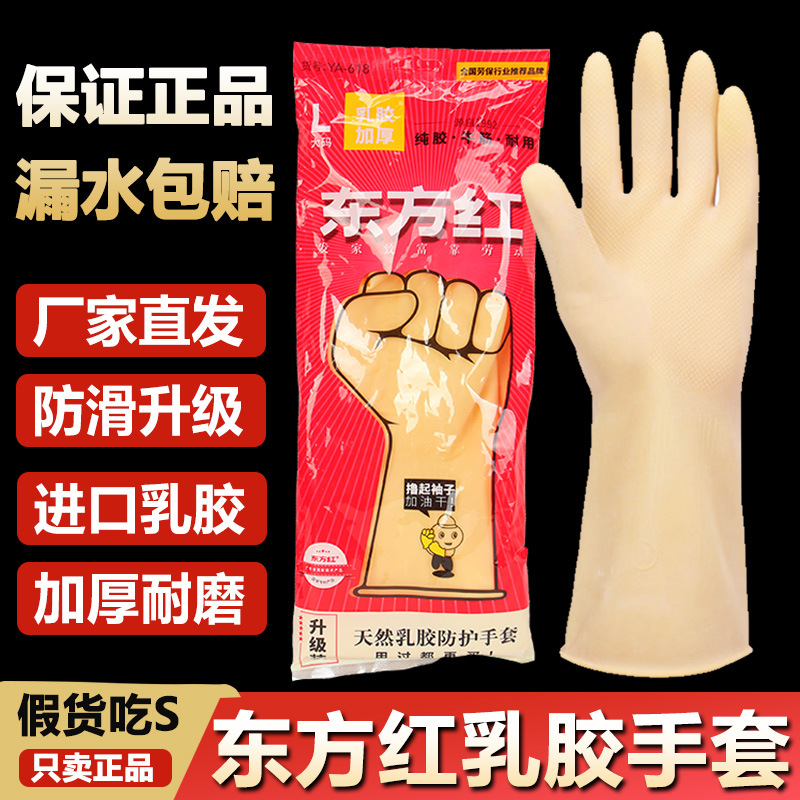 Dongfanghong 라텍스 장갑 고무 두꺼운 기름 방지 방수 미끄럼 방지 가정용 주방 가정용 세탁 설거지 장갑스토어 가기