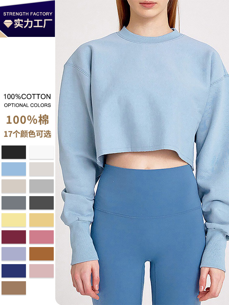 짧은 배꼽 스웨트 셔츠 유럽과 미국 여성의 대외 무역 아마존 기모 가을과 겨울 긴 소매 요가 운동복 탑스토어 가기