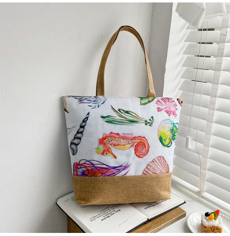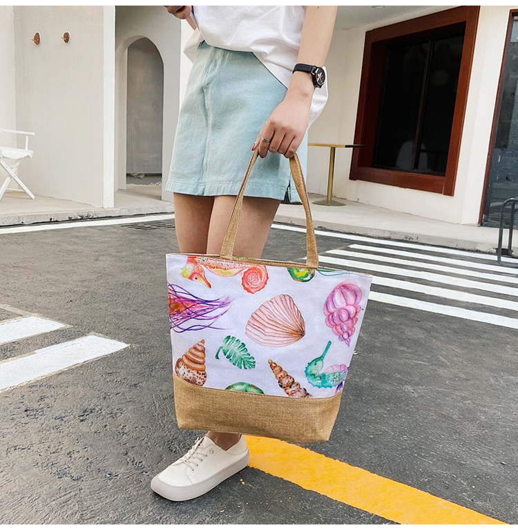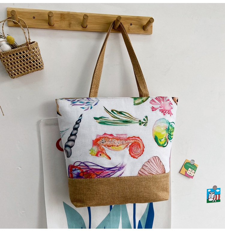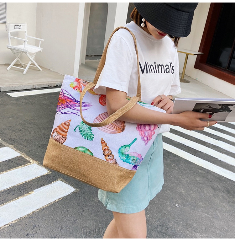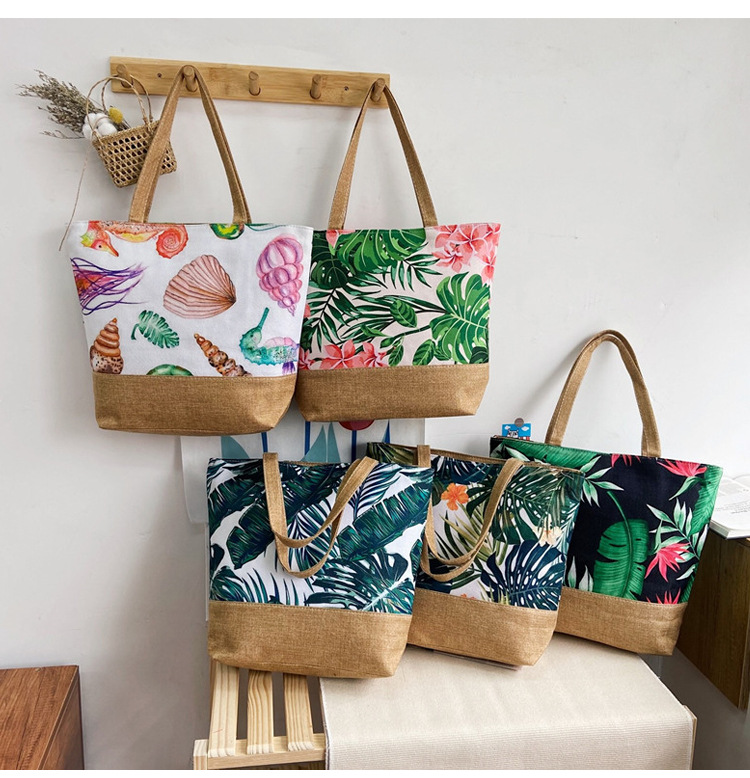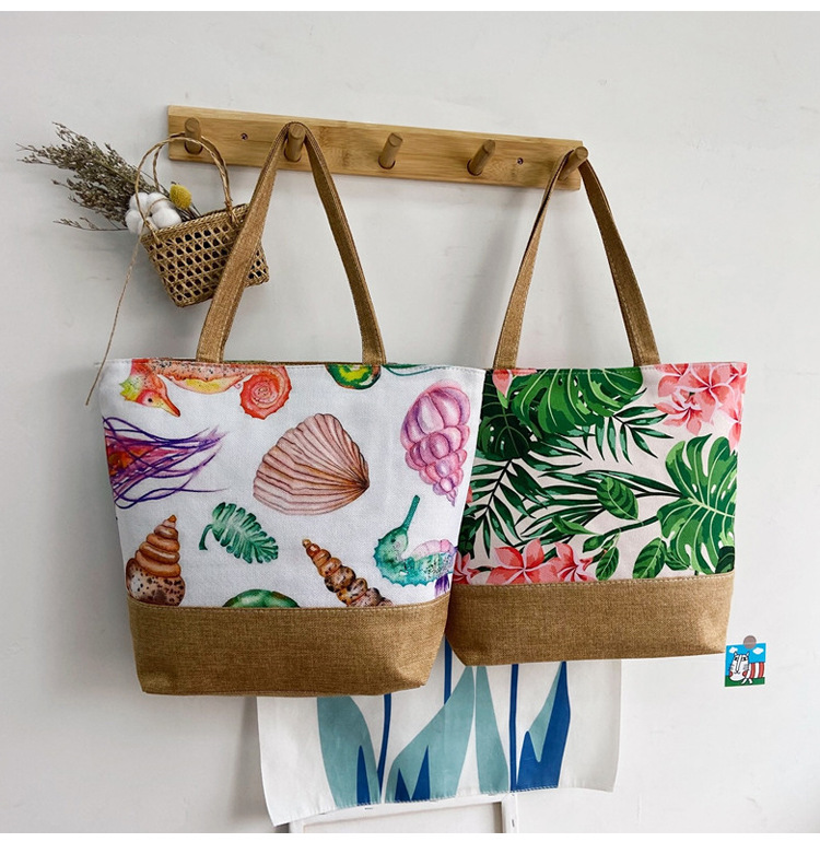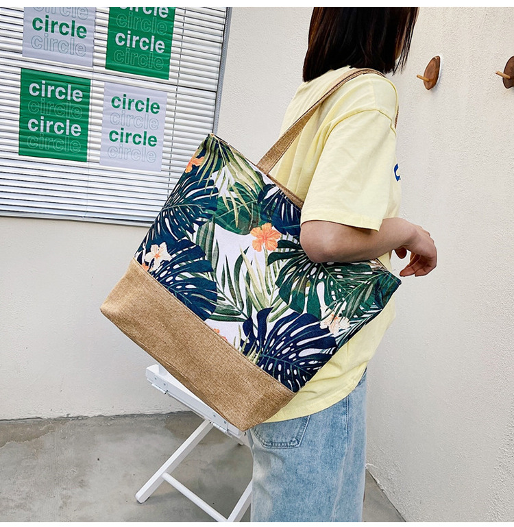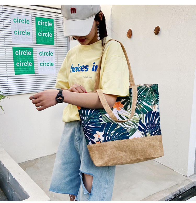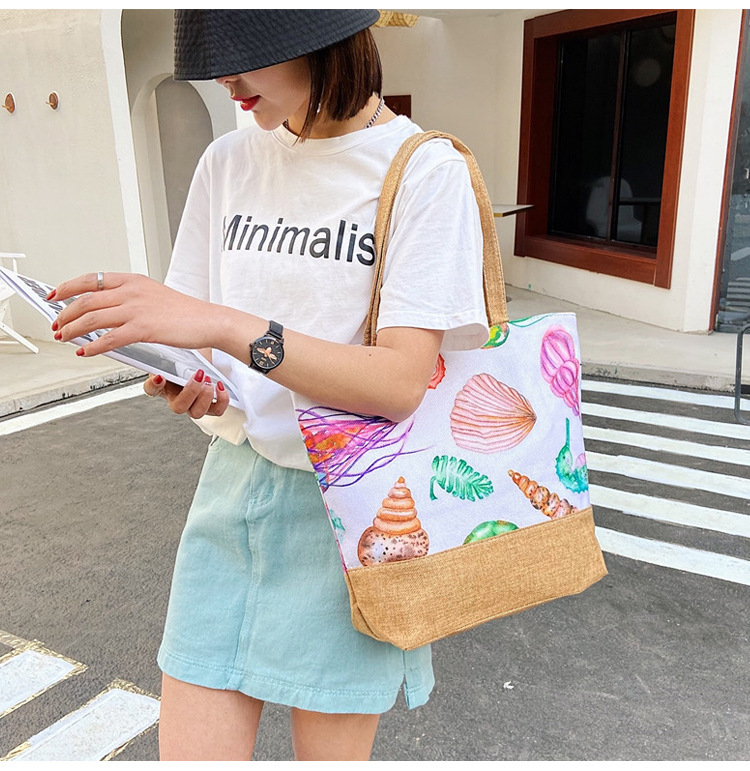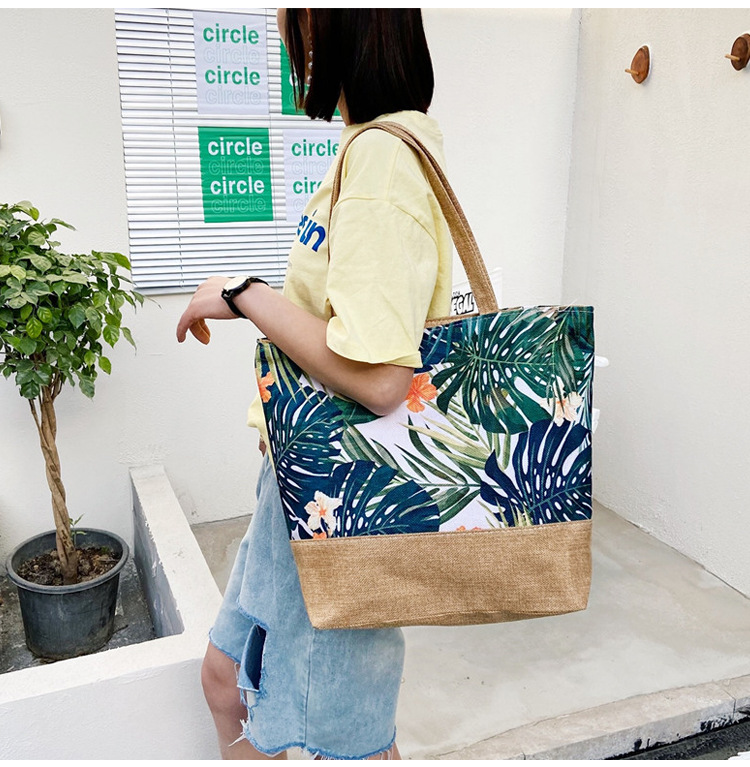 패션 캔버스 가방 새로운 국가 스타일 문학 숙녀 어깨 가방 간단한 토트 백 대용량 여성 어깨 비치 가방스토어 가기