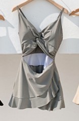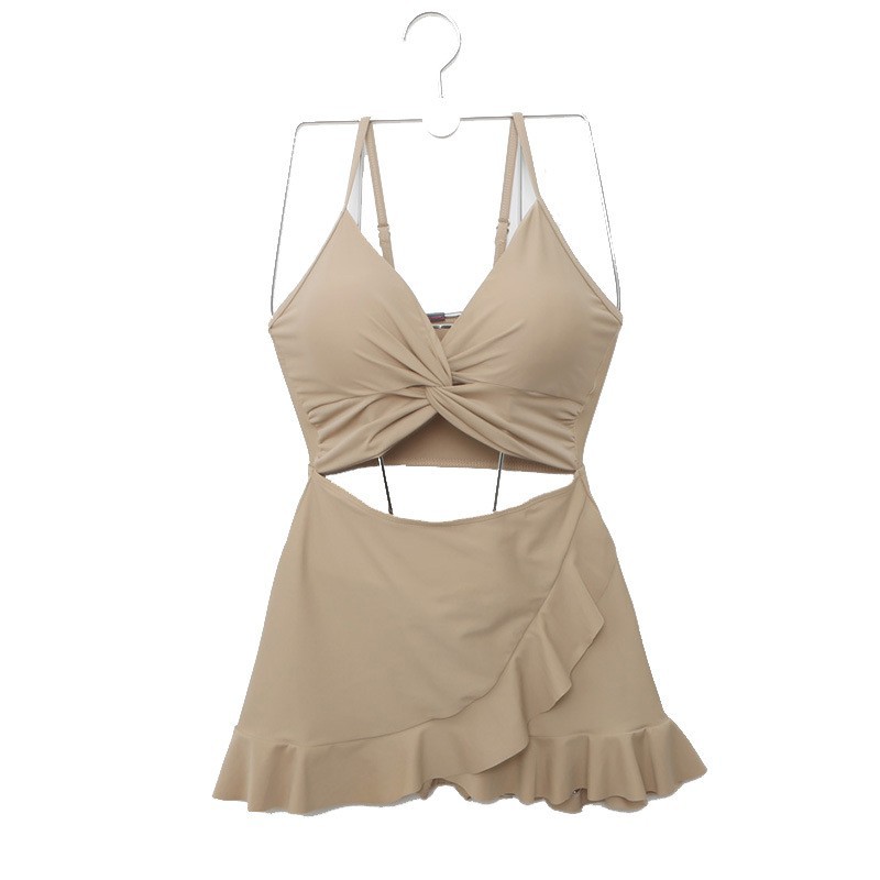 공장 한국 새로운 온천 등이없는 단색 불규칙한 하이 웨이스트 배꼽 커버 보수적 인 스커트 크로스 여성용 원피스 수영복