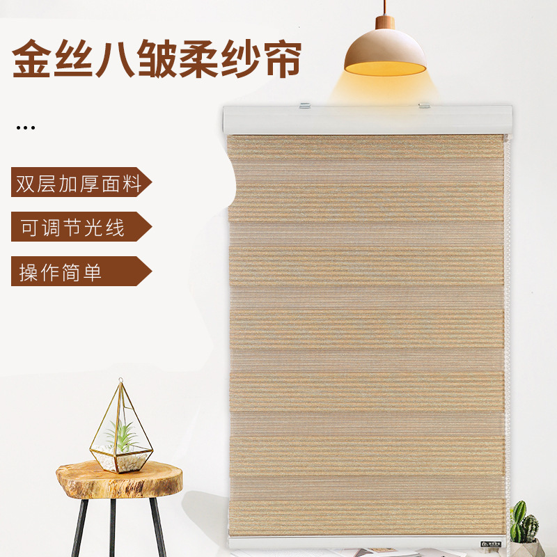 블라인드, 골드 실크 거즈 커튼, 침실 베이 창문 차양 커튼, 자외선 차단 롤스크린, 완제품 커튼, 재고 정리, 모던 심플 스타일스토어 가기