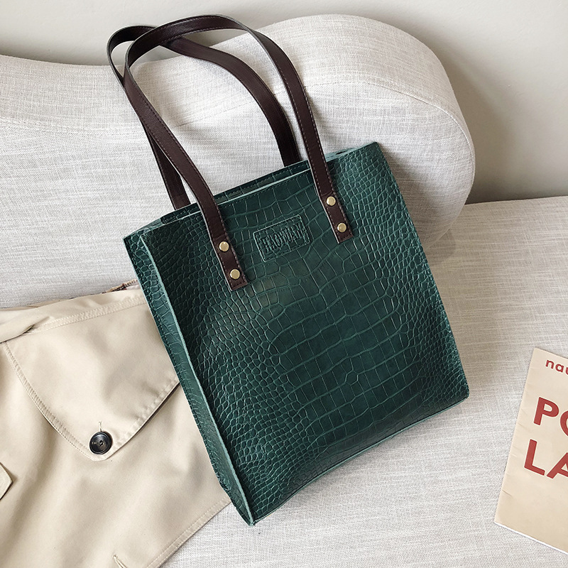 대외 무역 여성 가방 도매 PU 가죽 단색 돌 패턴 숄더백 여성 패션 학생 토트 백 올 매치 원피스 배달스토어 가기
