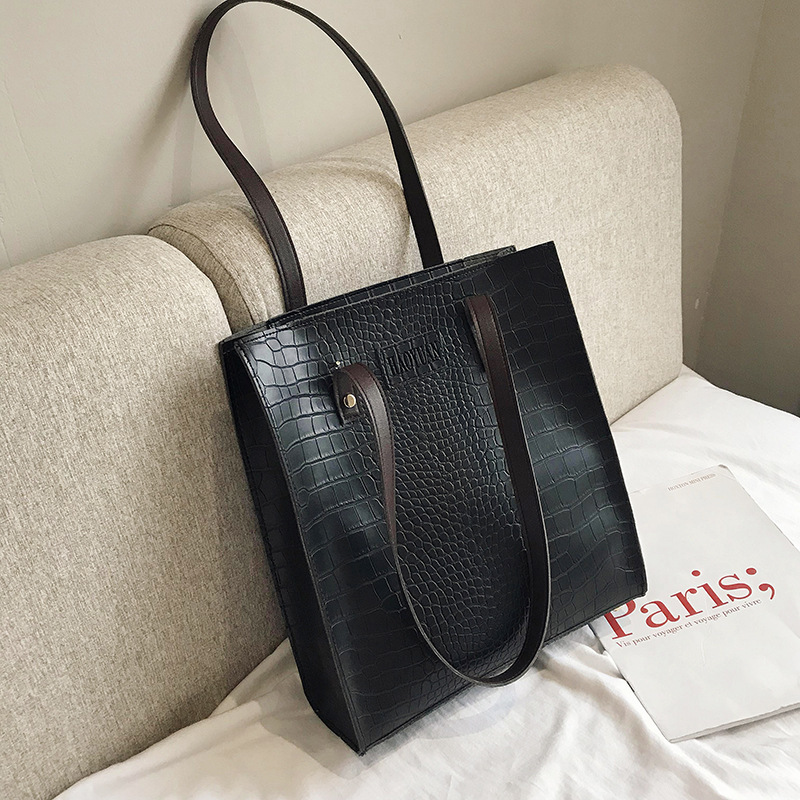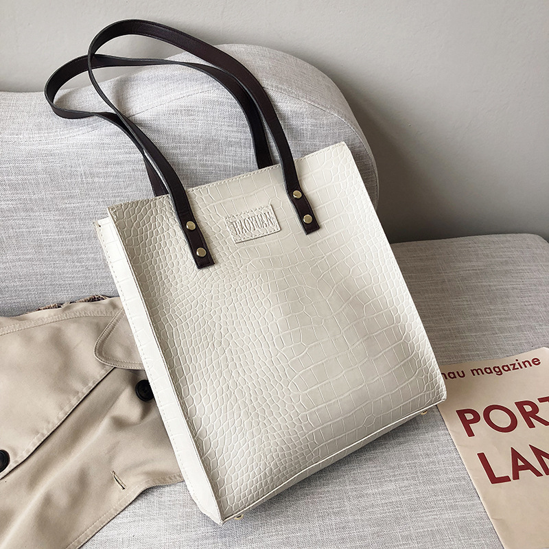 대외 무역 여성 가방 도매 PU 가죽 단색 돌 패턴 숄더백 여성 패션 학생 토트 백 올 매치 원피스 배달