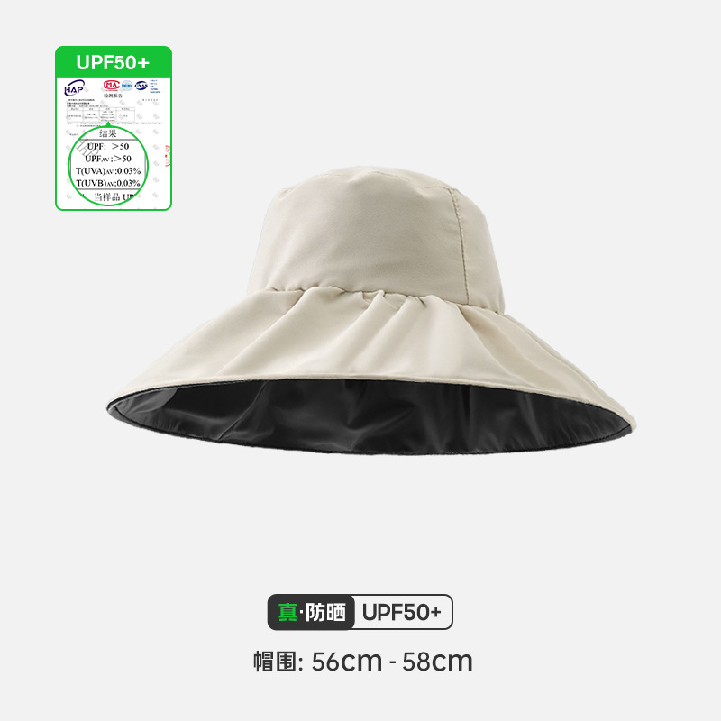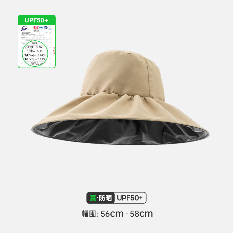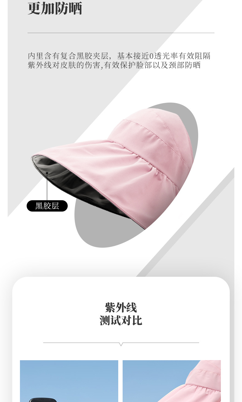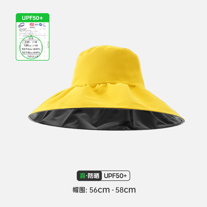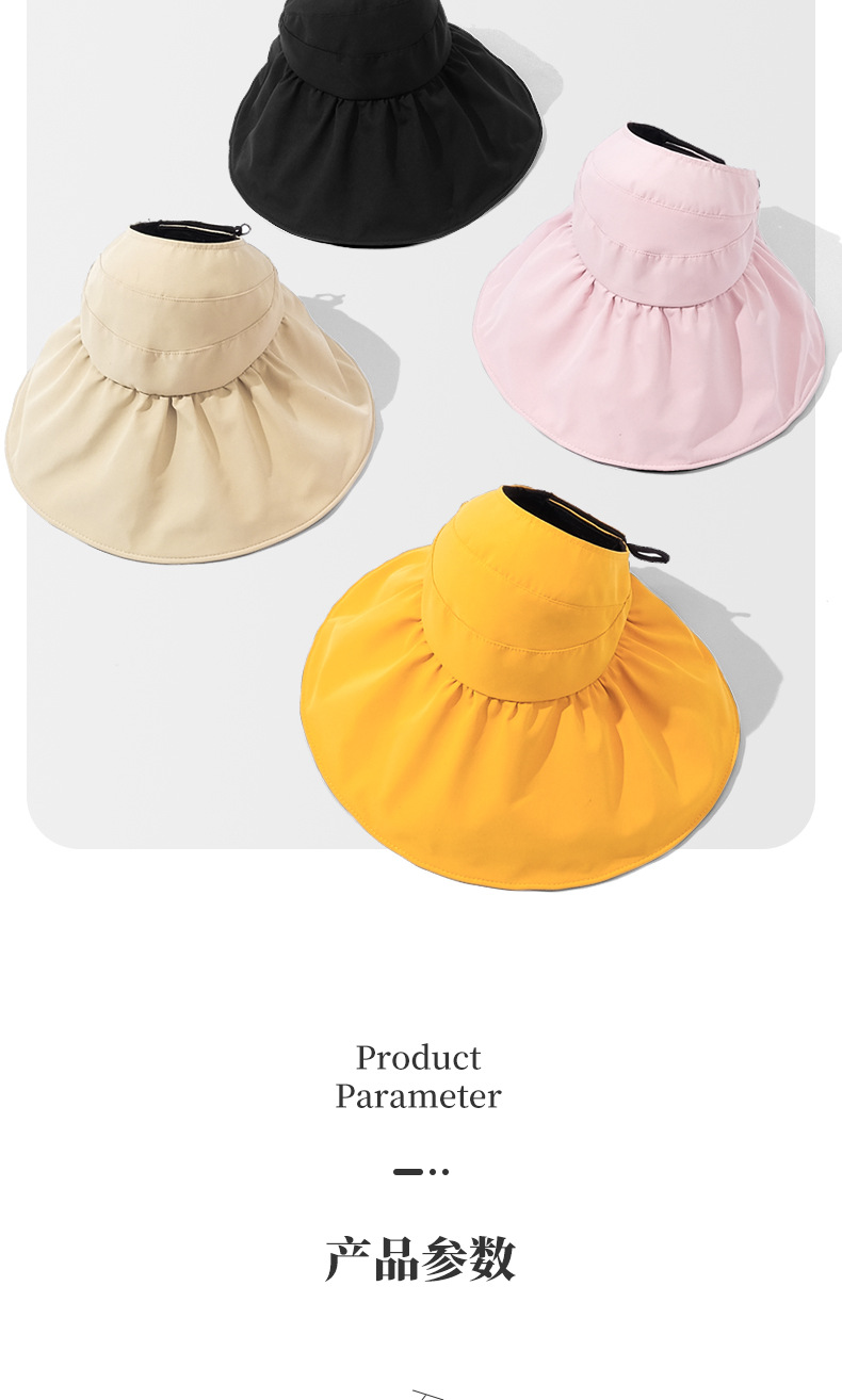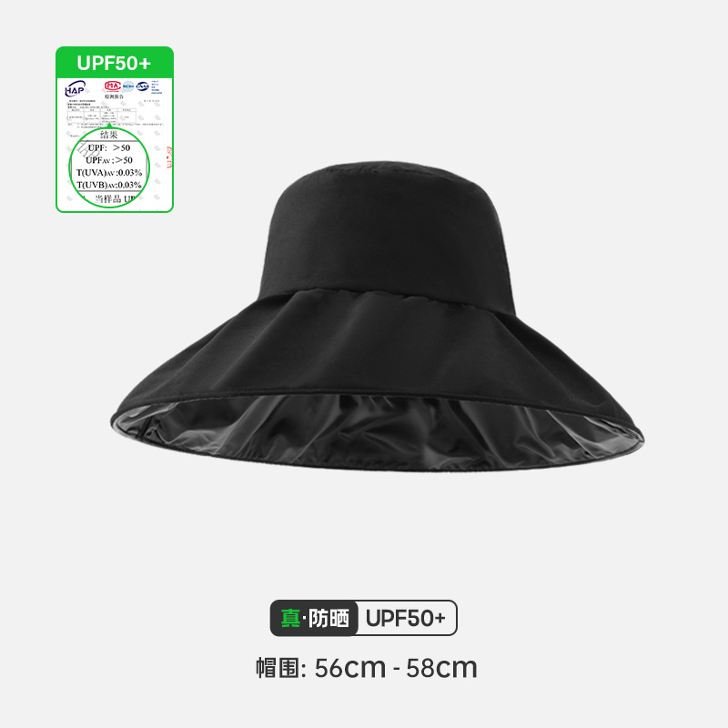 여성용 어부 모자, 빈 상단 자외선 차단 모자, 블랙 글로시 코팅, 야외용 자외선 차단, 접이식 차양 모자, 큰 챙스토어 가기