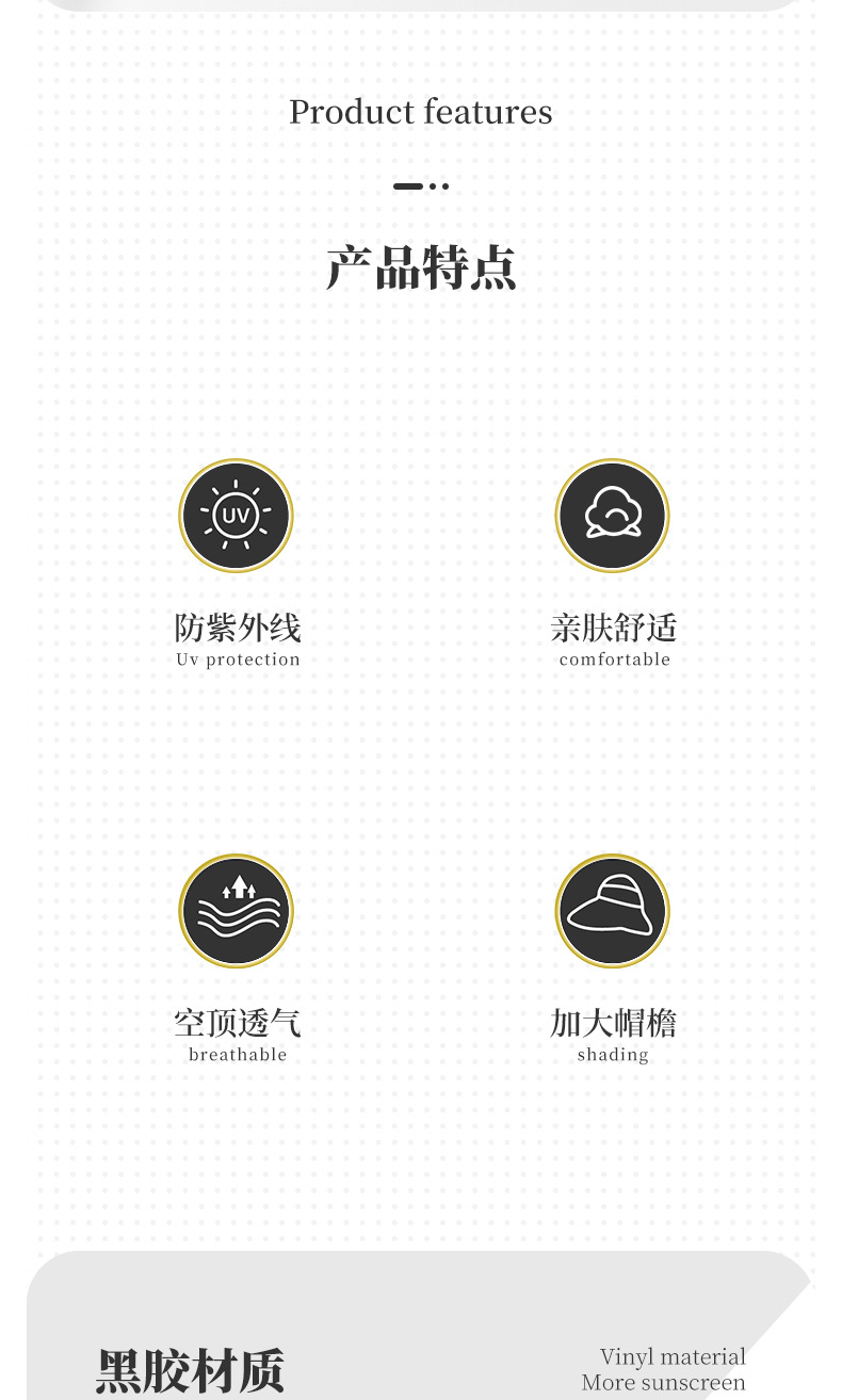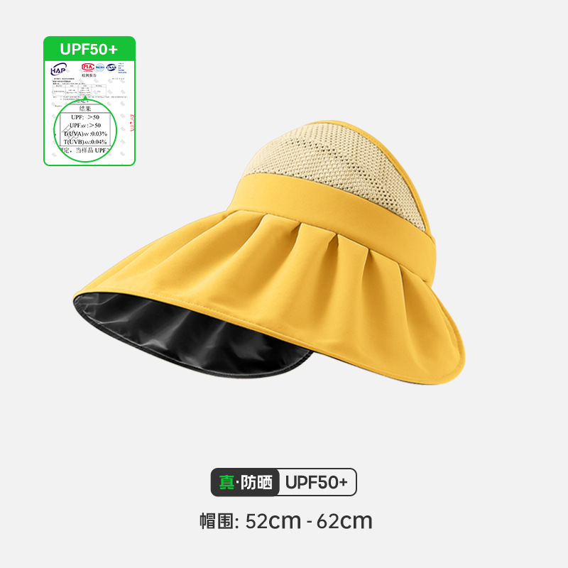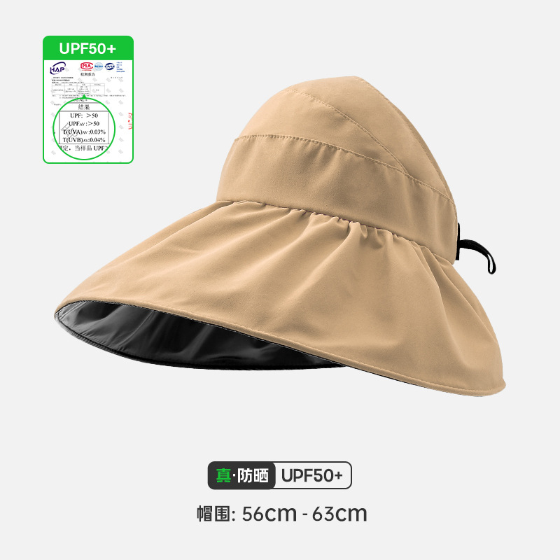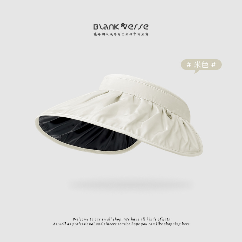 여성용 어부 모자, 빈 상단 자외선 차단 모자, 블랙 글로시 코팅, 야외용 자외선 차단, 접이식 차양 모자, 큰 챙