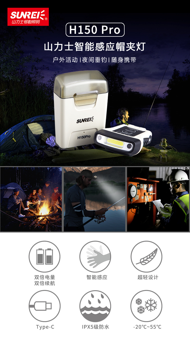 샨 럭스 H150 PRO 인덕션 캡 램프 낚시 전조등 캡 램프 슈퍼 브라이트 울트라 라이트 야간 낚시 램프 캡 챙 램프스토어 가기