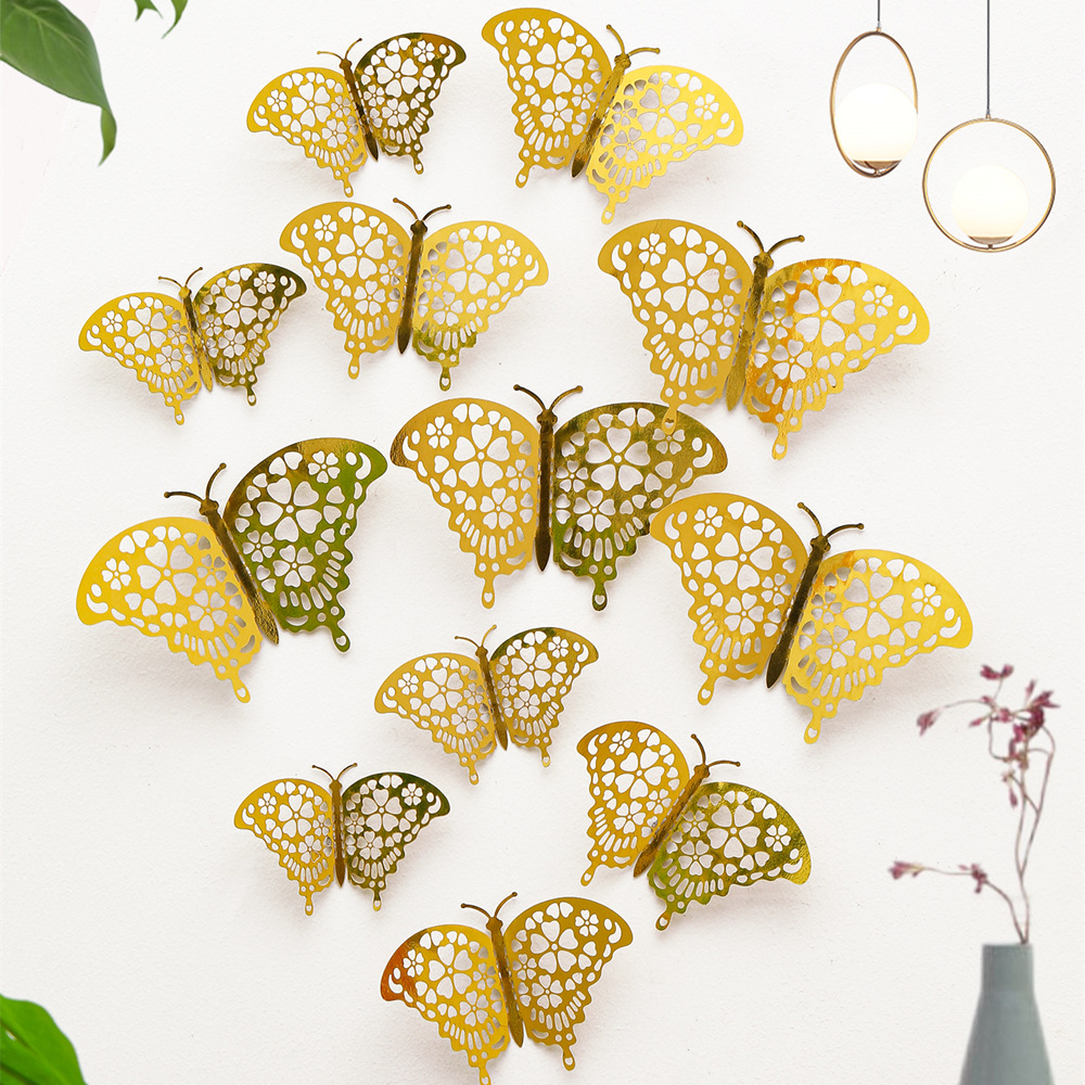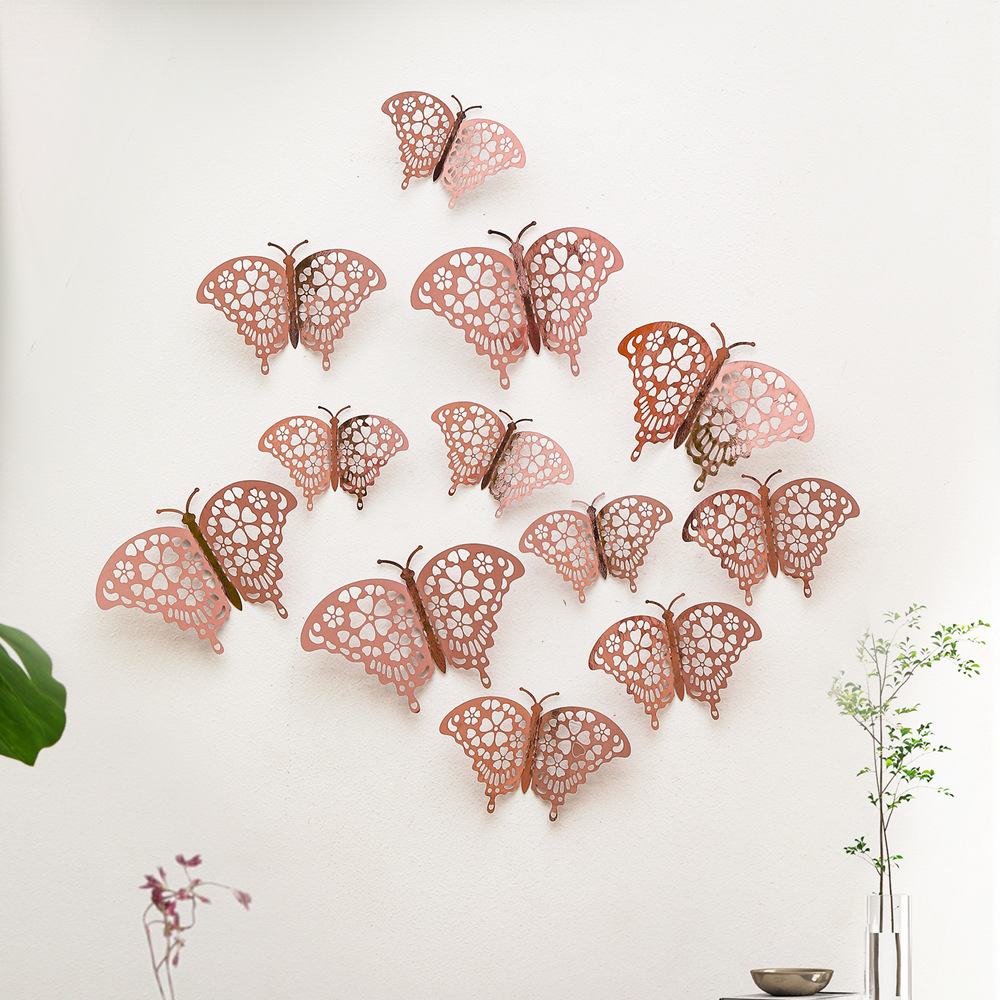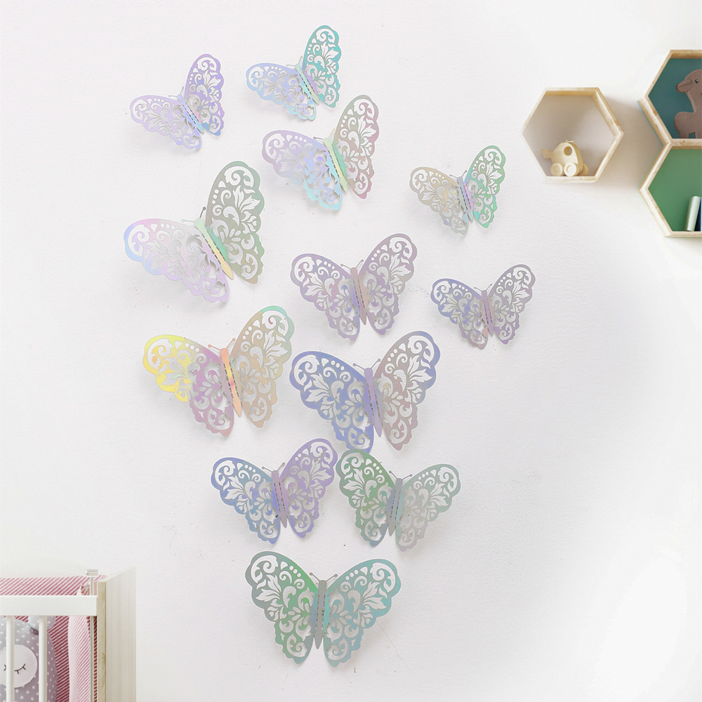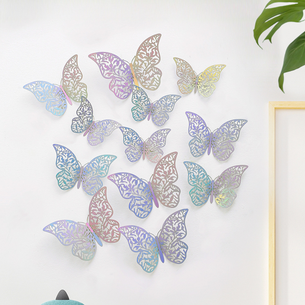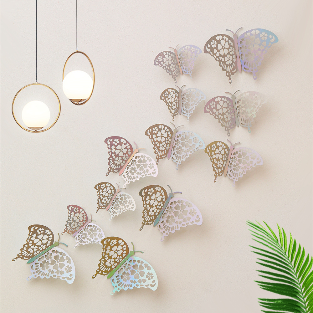 벽 장식 자체 접착 침실 따뜻한 웨딩 룸 커튼 냉장고 스티커 중공 진주 종이 나비 입체 벽 스티커
