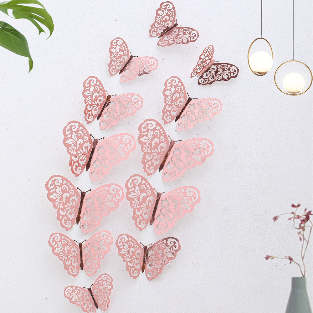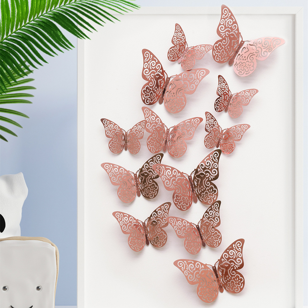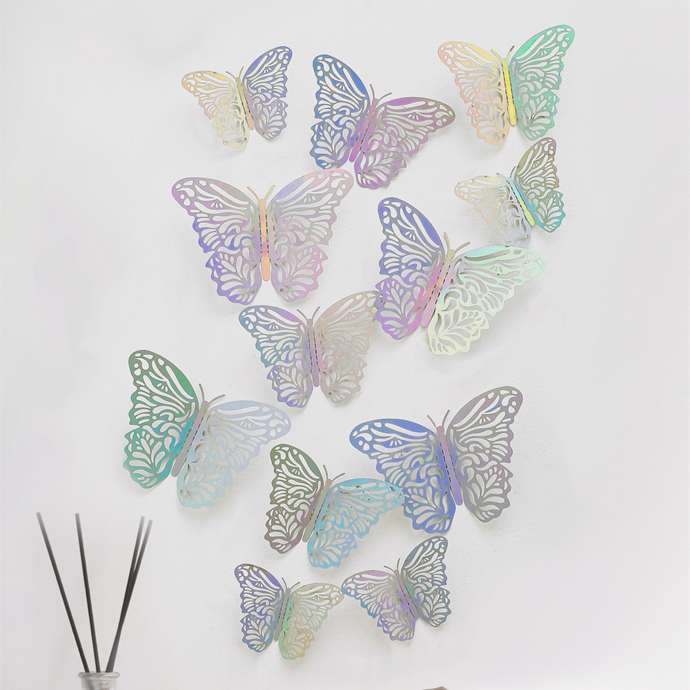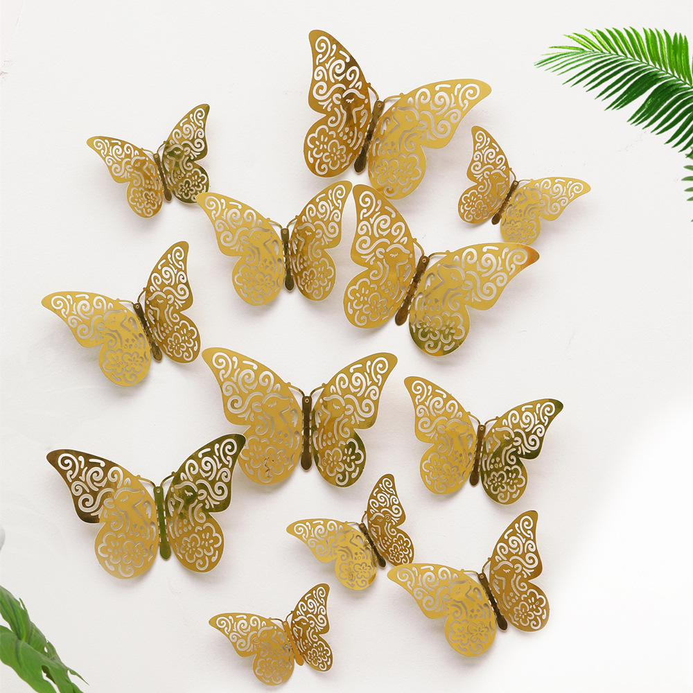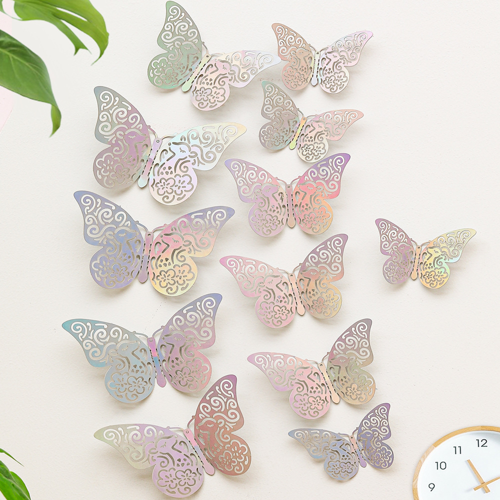 벽 장식 자체 접착 침실 따뜻한 웨딩 룸 커튼 냉장고 스티커 중공 진주 종이 나비 입체 벽 스티커