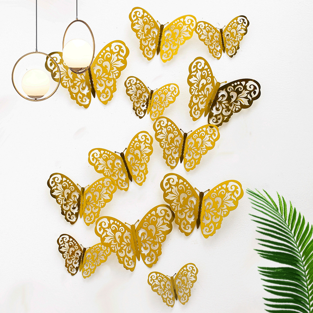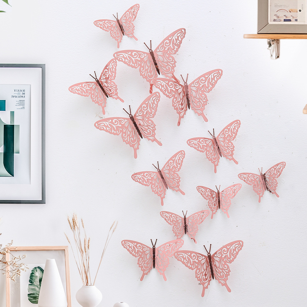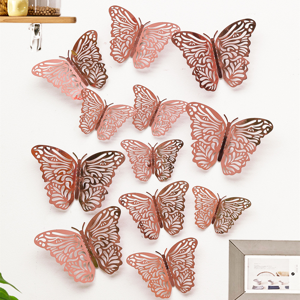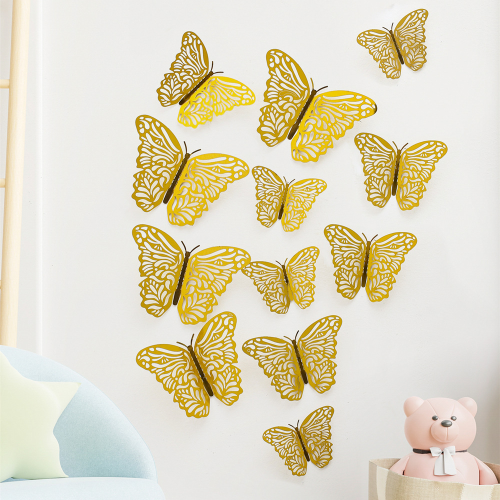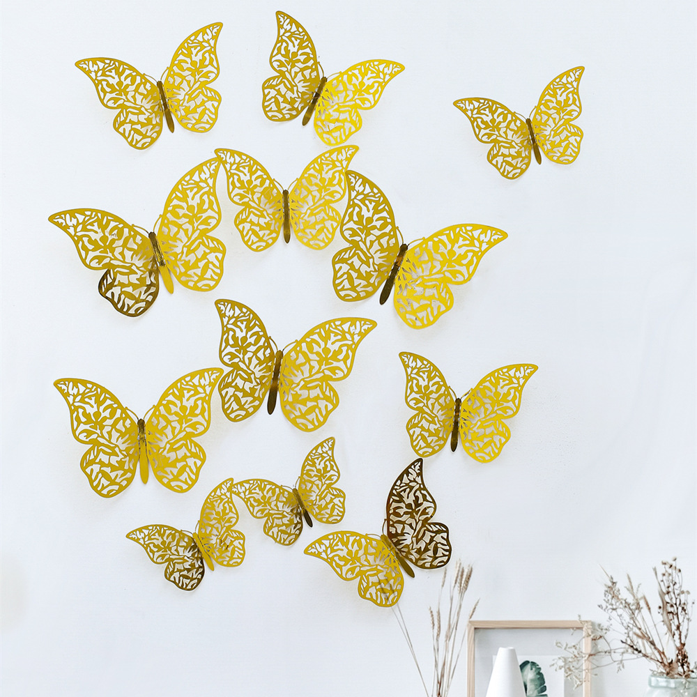 벽 장식 자체 접착 침실 따뜻한 웨딩 룸 커튼 냉장고 스티커 중공 진주 종이 나비 입체 벽 스티커