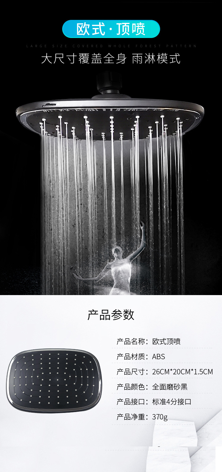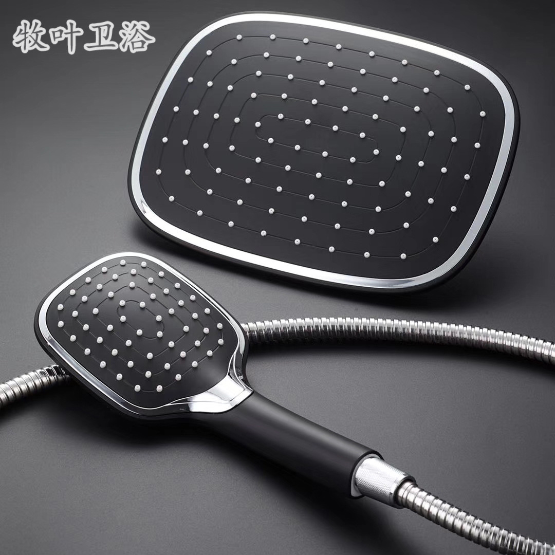 플라스틱 일반 샤워 무압 비압 샤워 헤드 핸드 홀드 천공 샤워 세트 블랙