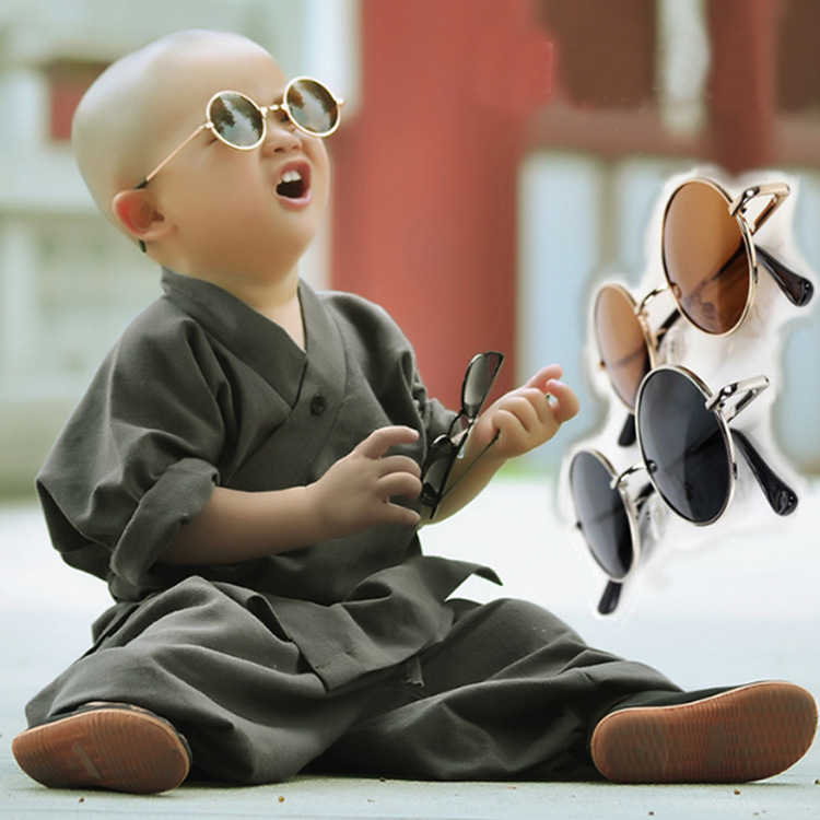 빈티지 라운드 프레임 소년과 소녀를위한 어린이 선글라스 아기의 안경 금속 라운드 부모-자식 선글라스 왕자의 안경 맞춤 안경스토어 가기