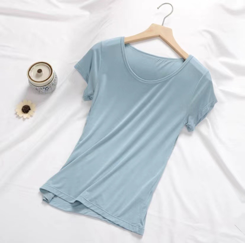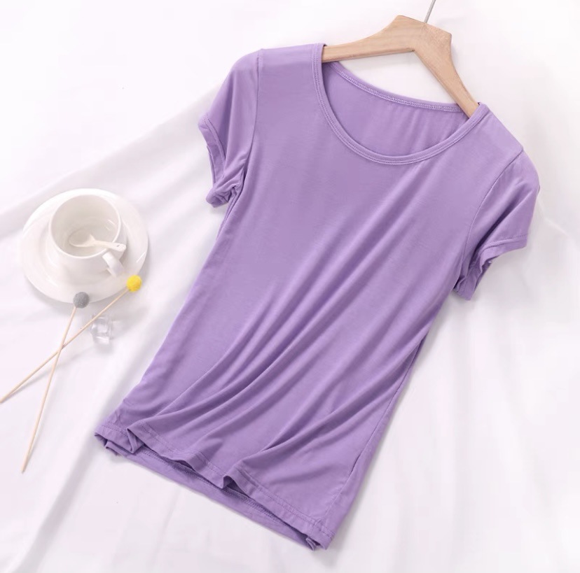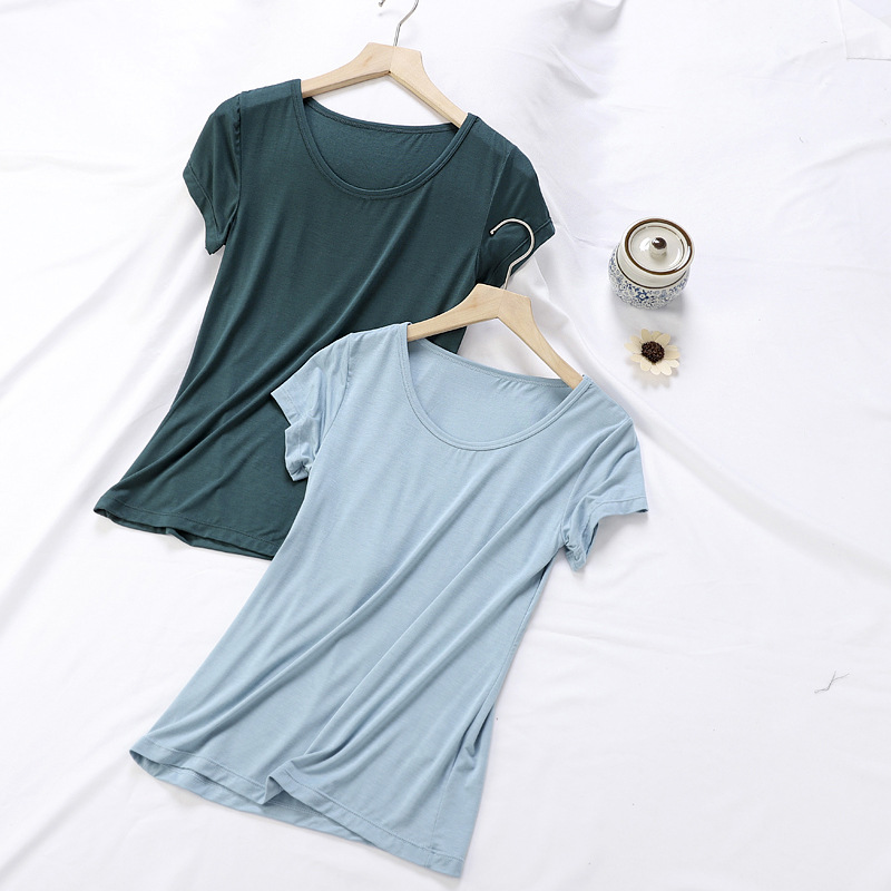여성용 모달 단색 반팔 잠옷 홈웨어 캐주얼 상의 도매, 외출복으로도 착용 가능, 심플하고 편안함스토어 가기