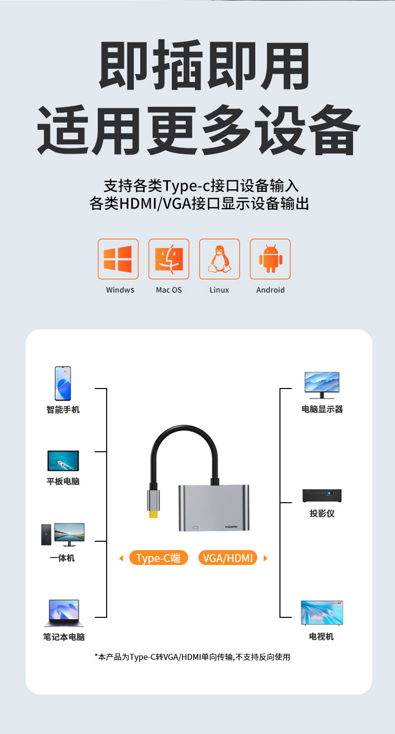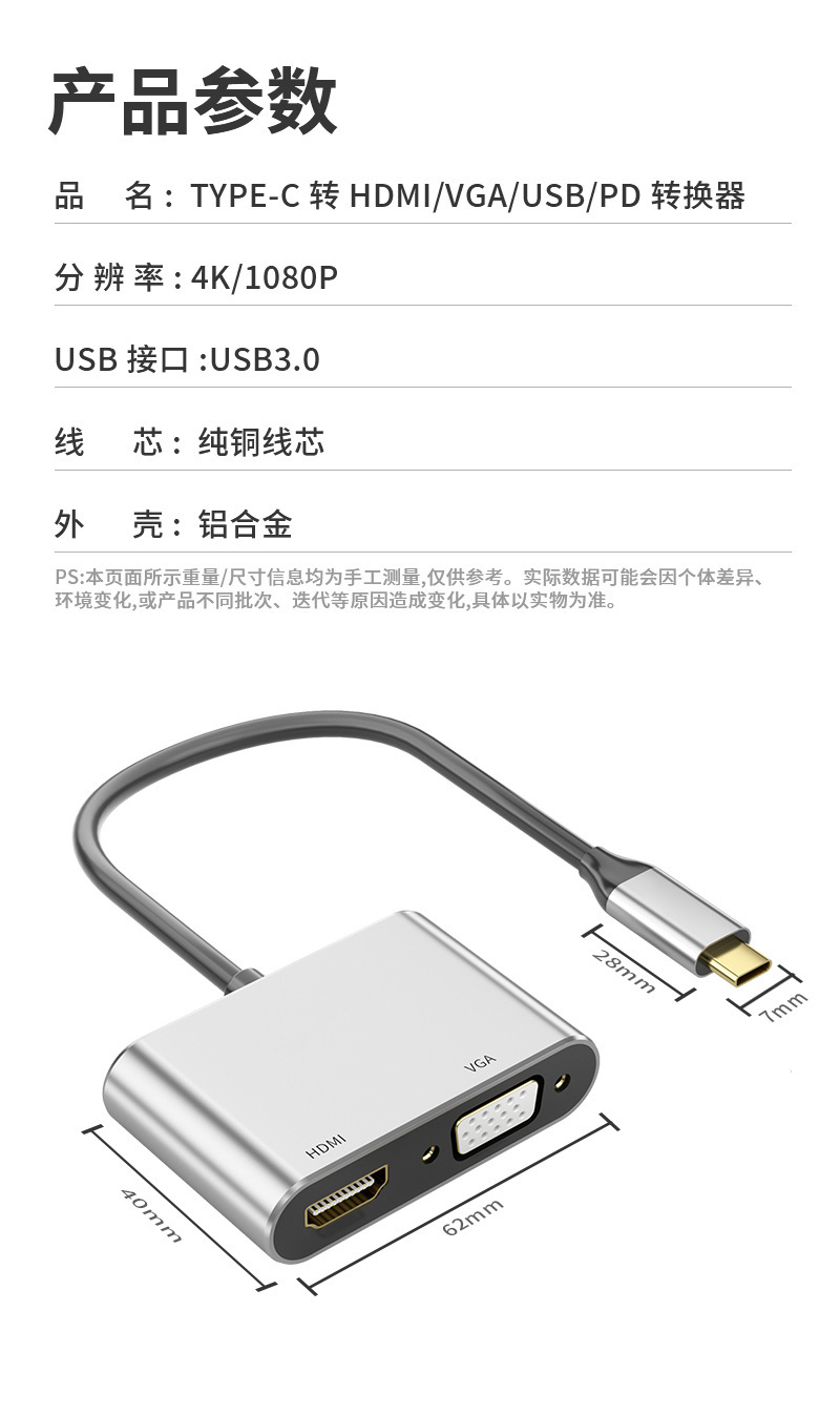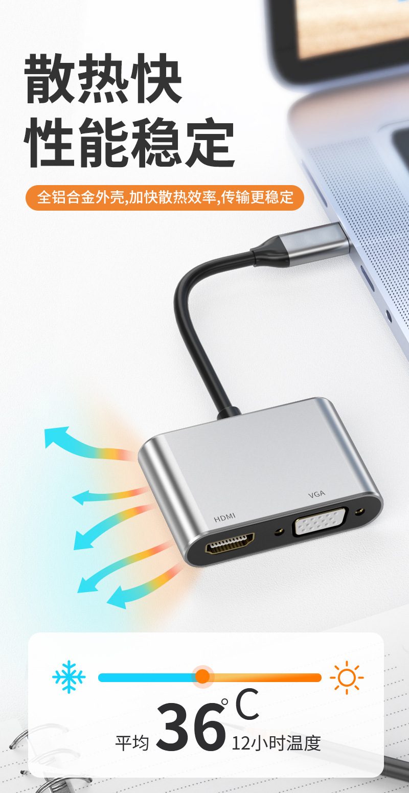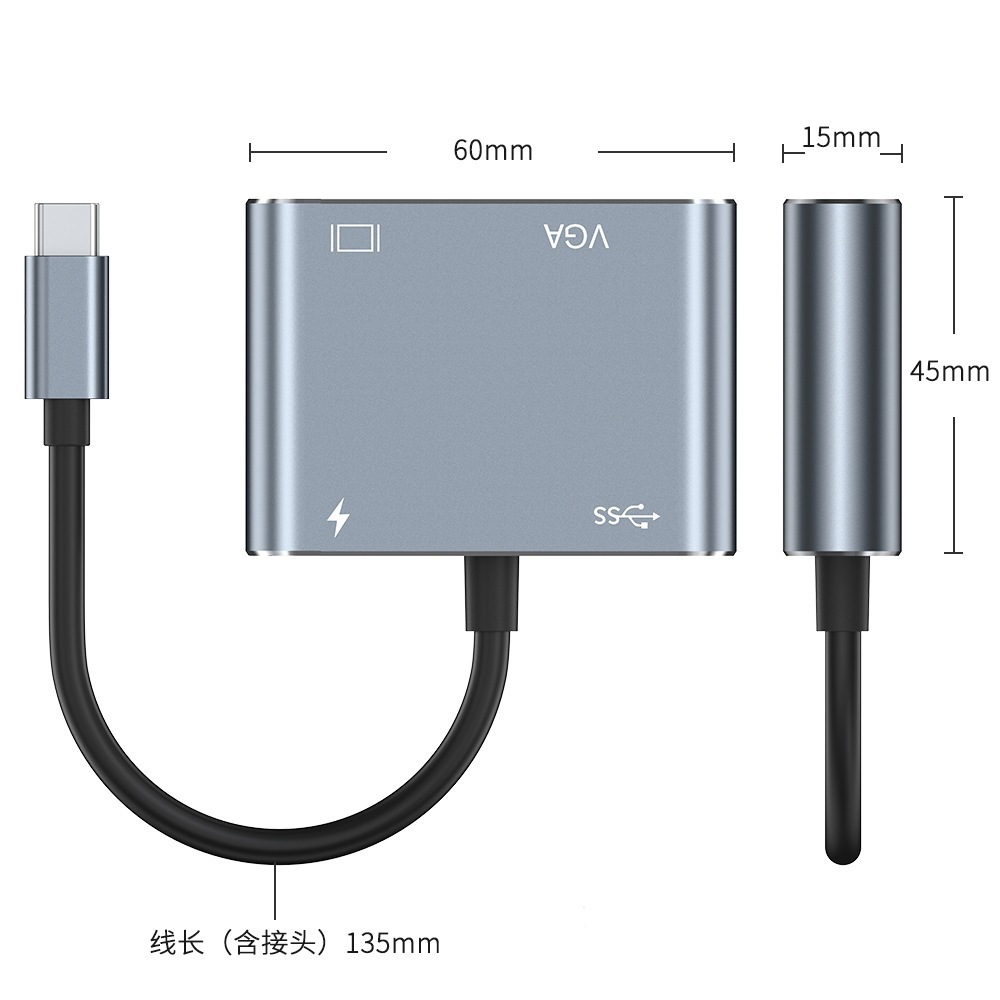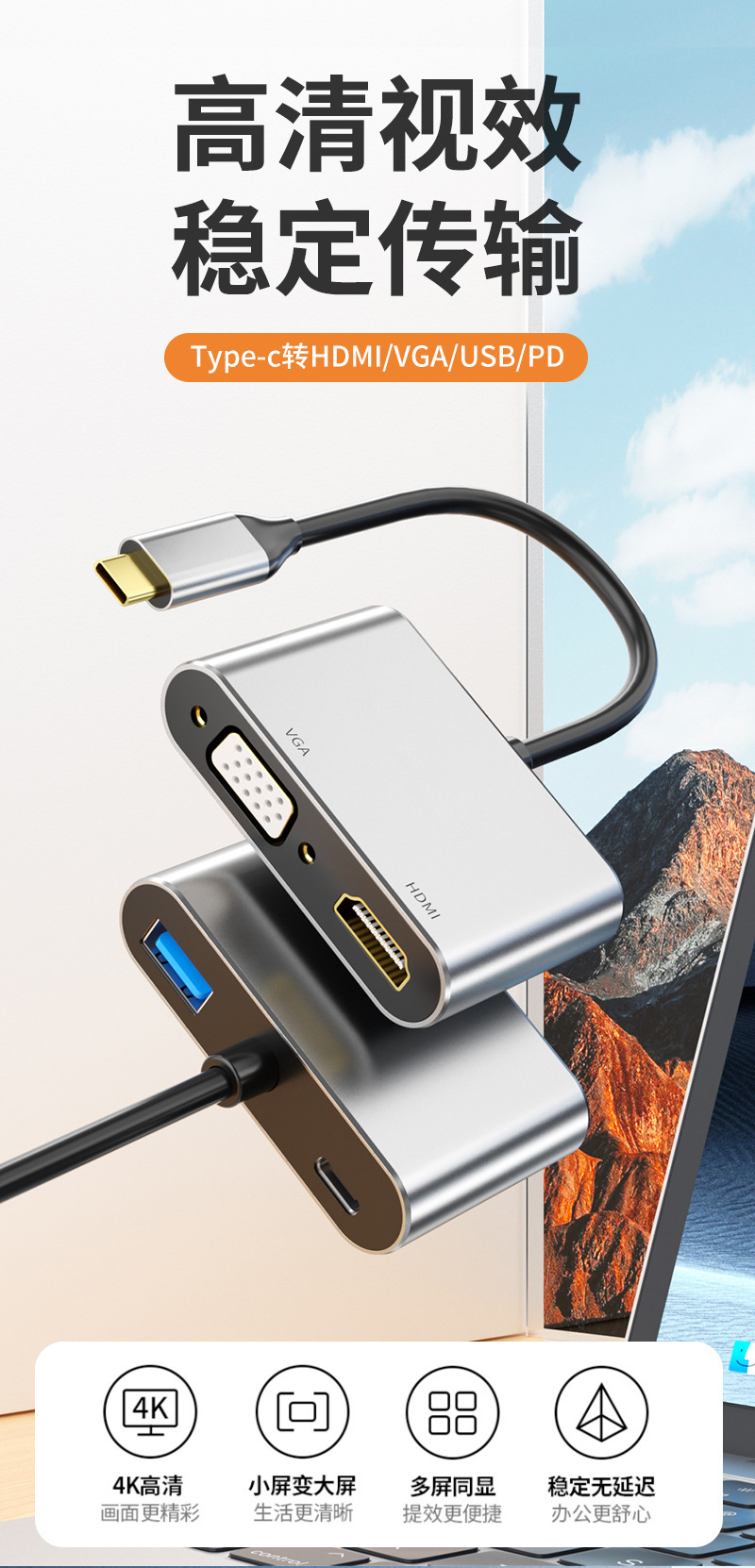 TYPE-C to HDMI+VGA 4-in-1 4K 고화질 확장 도크 PD USB 고속 충전 허브 변환 케이블