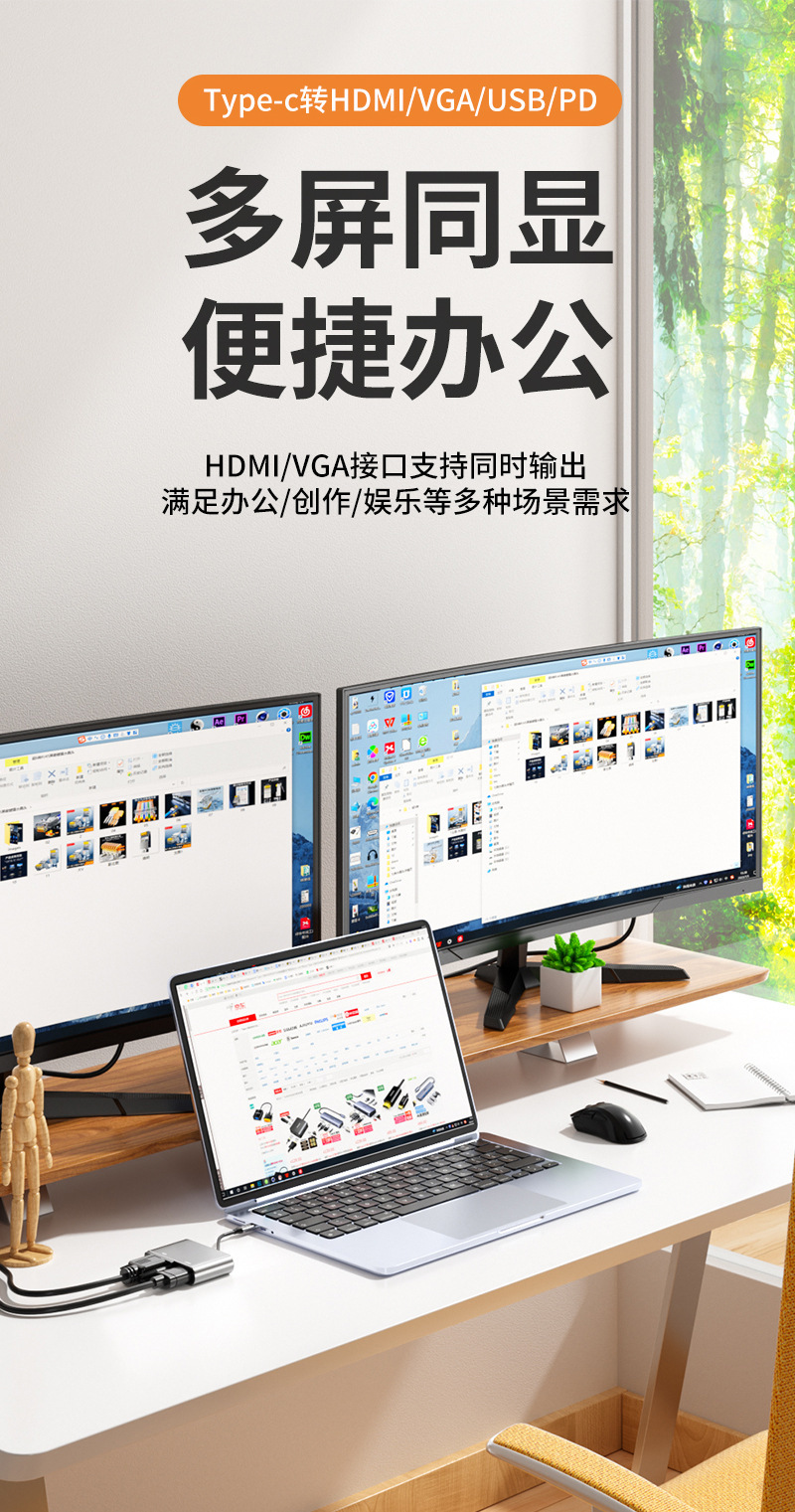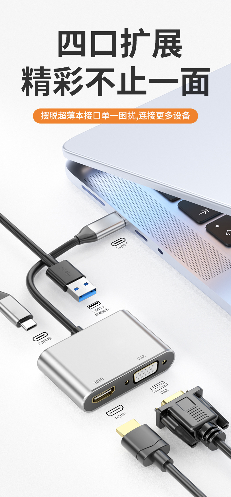 TYPE-C to HDMI+VGA 4-in-1 4K 고화질 확장 도크 PD USB 고속 충전 허브 변환 케이블스토어 가기