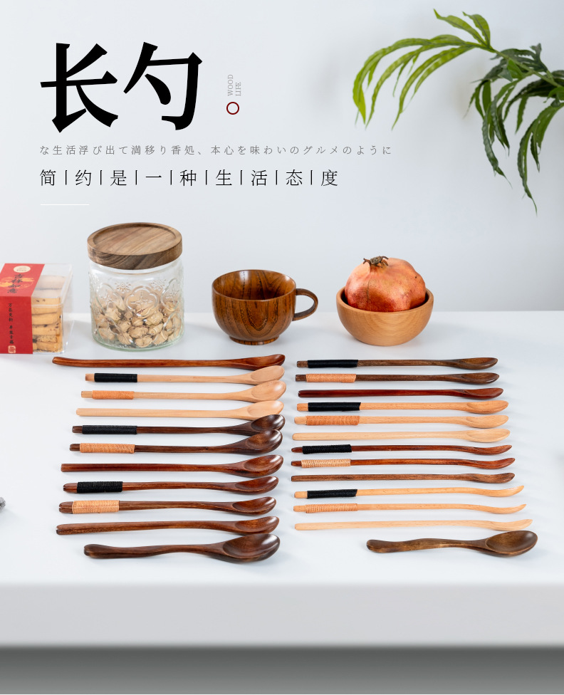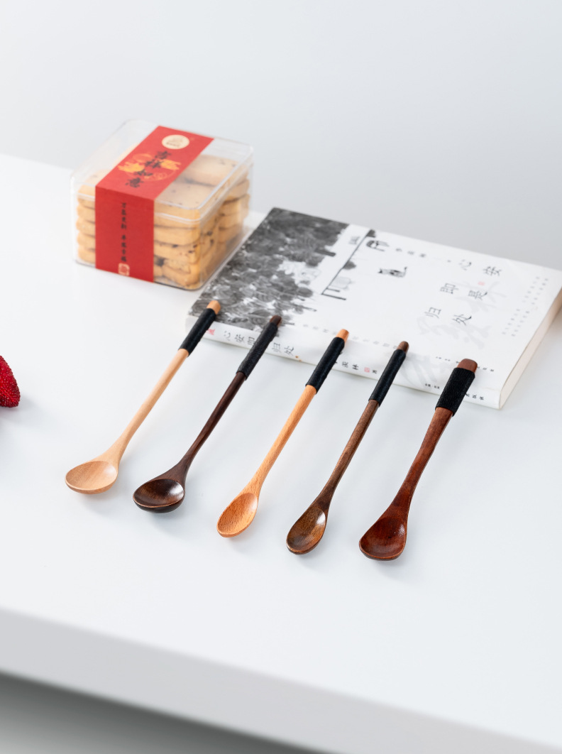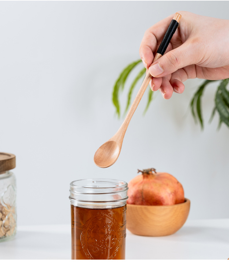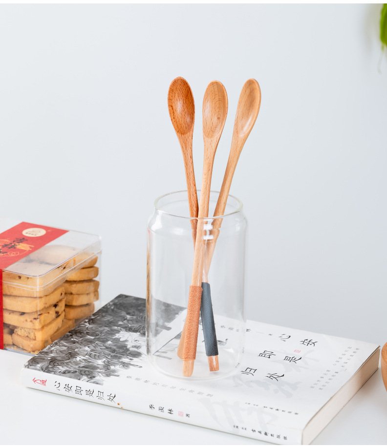 새로운 둥지 창조적 인 나무 믹싱 스푼 일본 긴 손잡이 꿀 스푼 사무실 커피 스푼 재고 도매