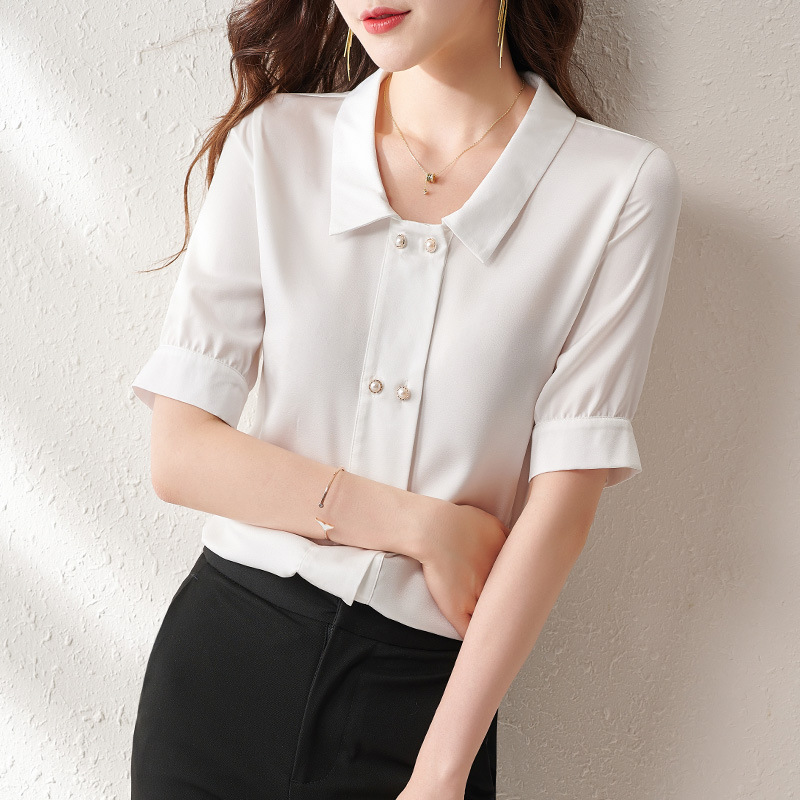 사랑의 옷 2023 여름 새로운 새틴 쉬폰 셔츠 여성용 반팔 셔츠 여성용 화이트 셔츠 웨스턴 스타일 셔츠