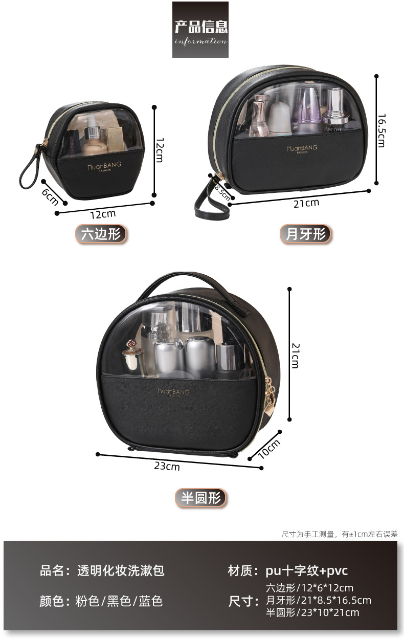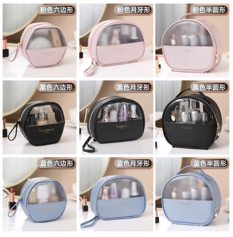 인터넷 트렌디 한 화장품 가방 여성용 대용량 휴대용 여행 보관함 스타일 화장품 세면 도구 가방 PVC 가방 투명스토어 가기