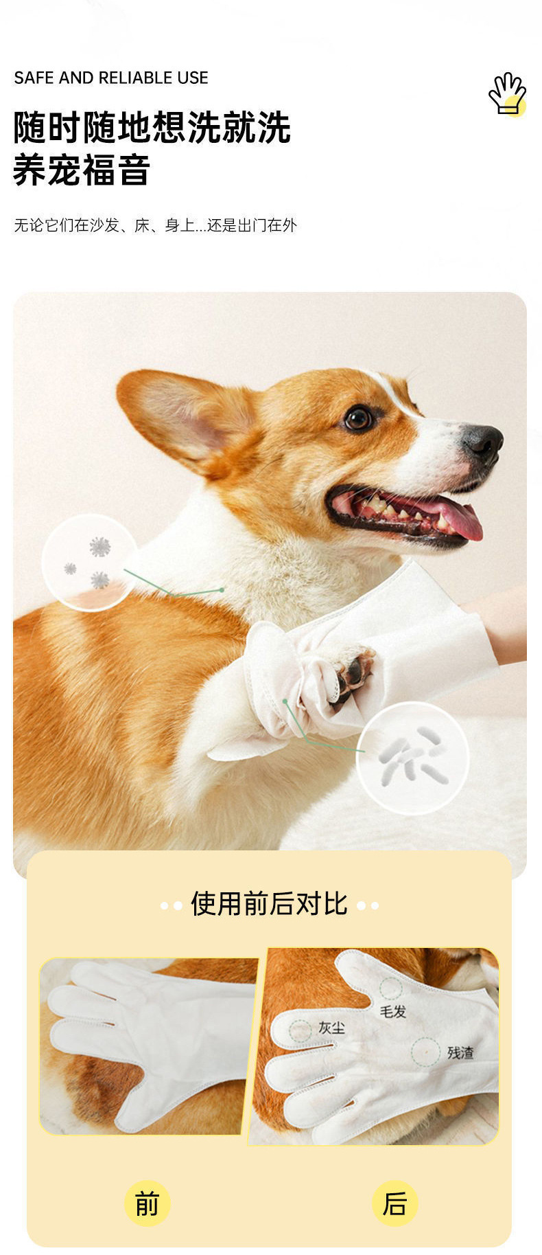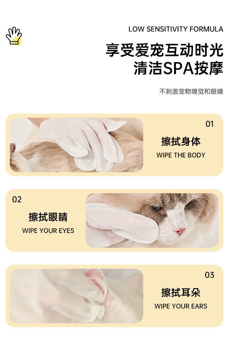 애완동물 무세척 청소 장갑 고양이 드라이 클리닝 케어 부직포 물티슈 고양이와 개 겸용 일회용 목욕 장갑스토어 가기