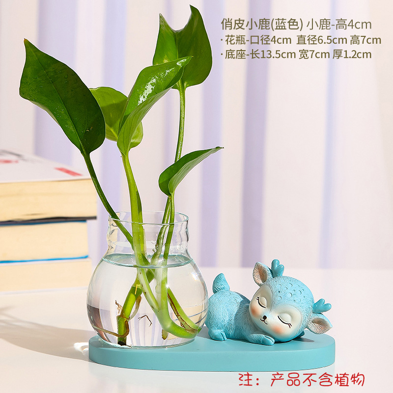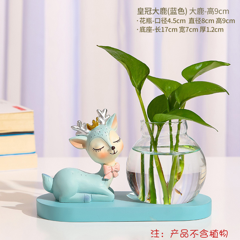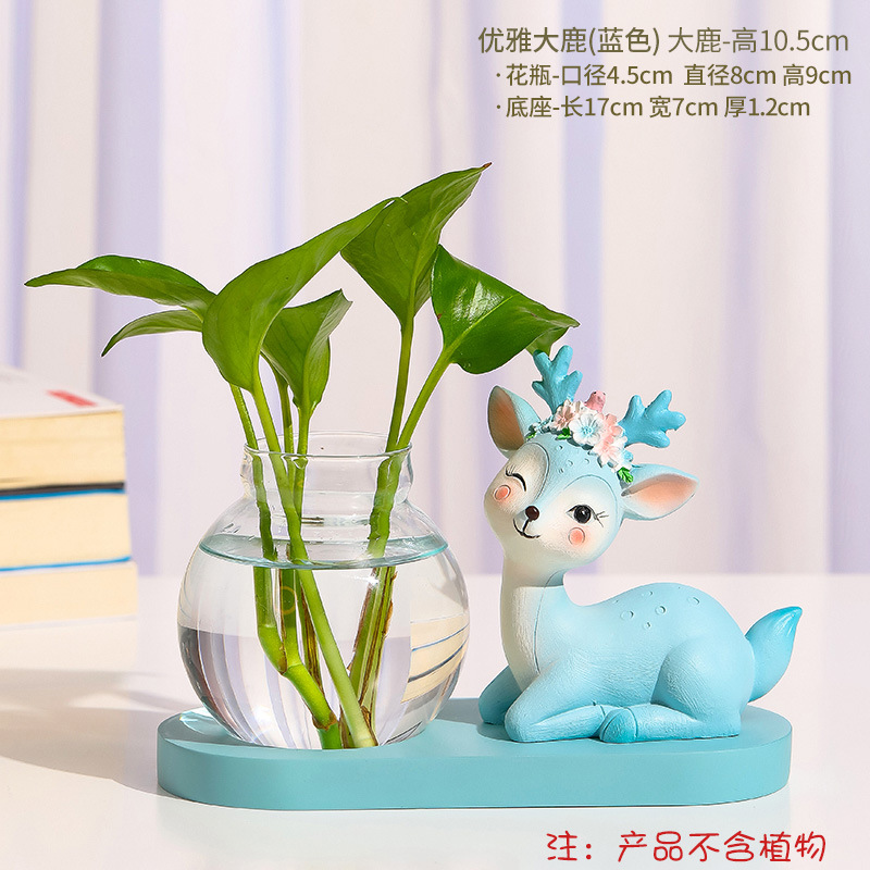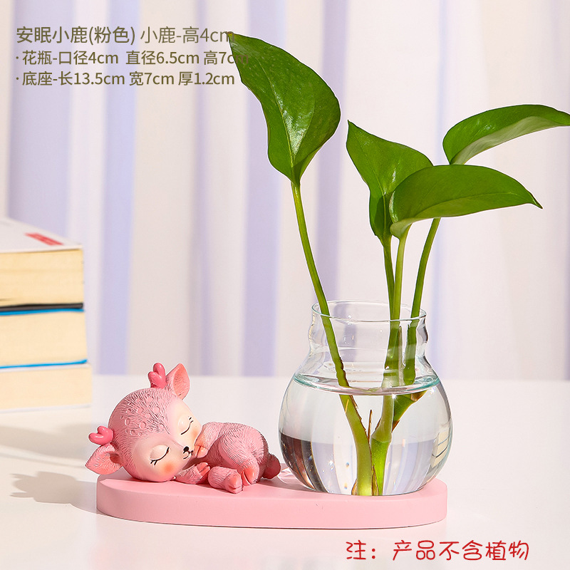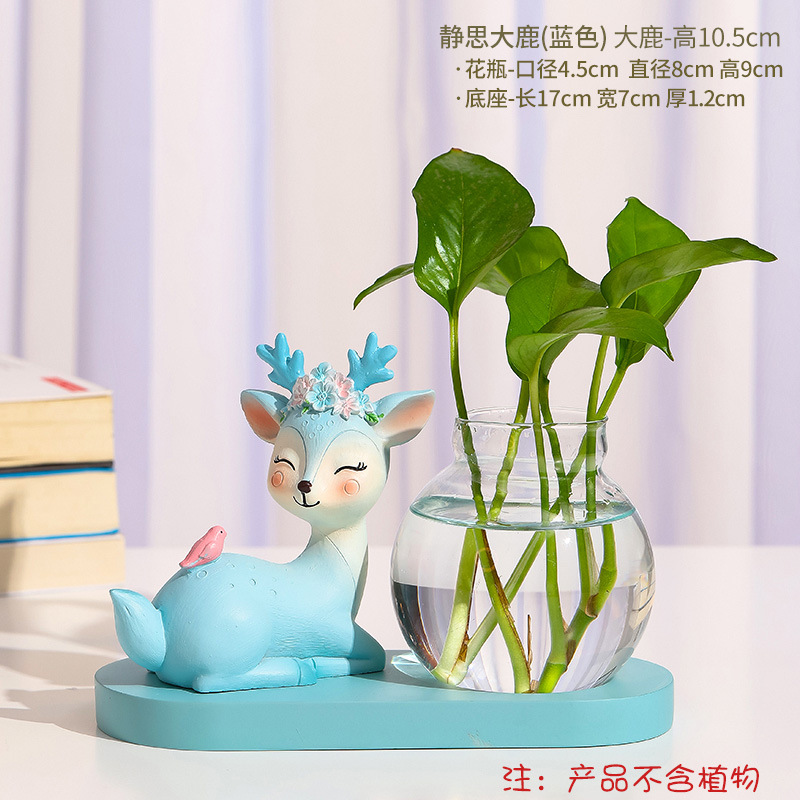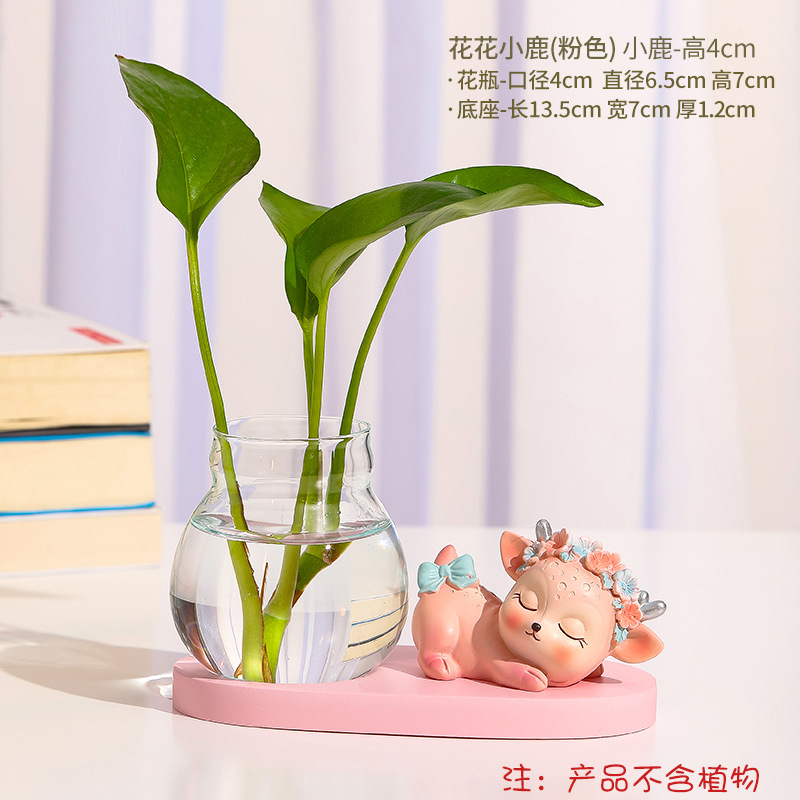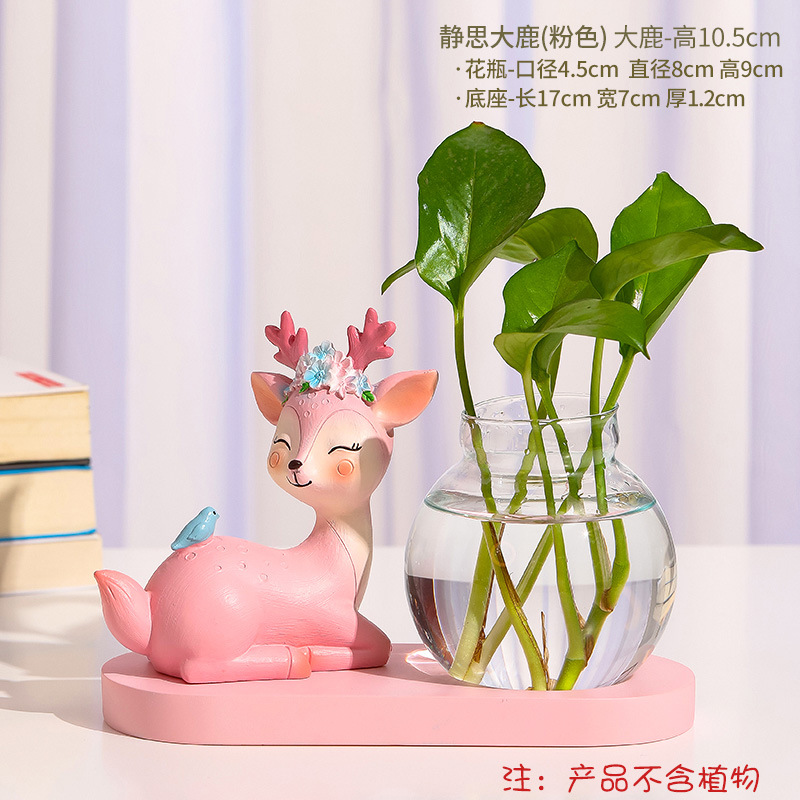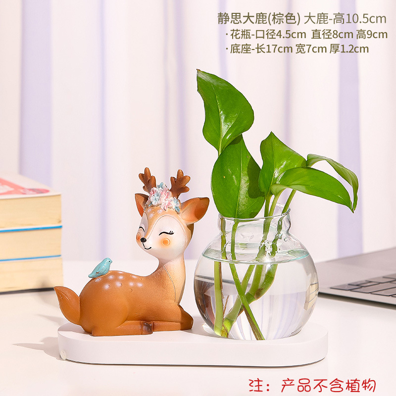 당이 수지 공예 장식품 만화 창조적 인 꽃 사슴 수경 가정 입구 책상 장식