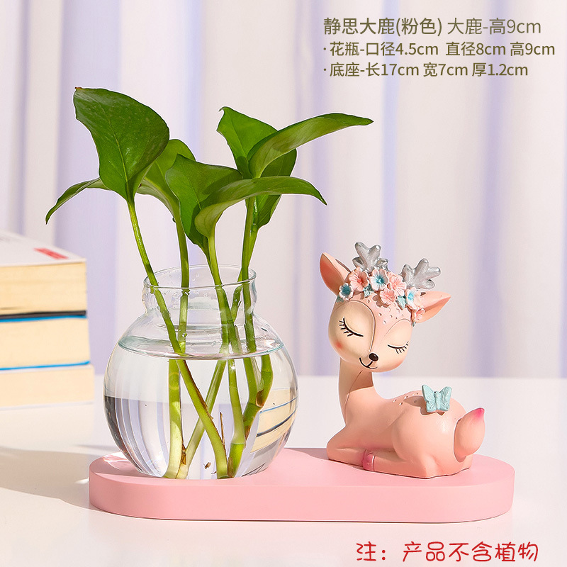 당이 수지 공예 장식품 만화 창조적 인 꽃 사슴 수경 가정 입구 책상 장식스토어 가기