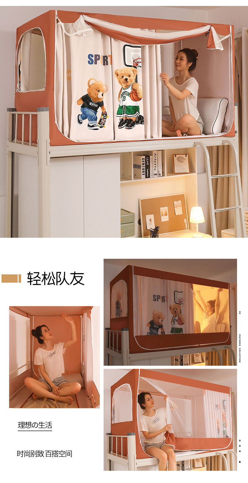 침대 커튼 모기장 통합 학생 기숙사 상하 수풀 음영 및 방진 기숙사 침대 커튼 높고 낮은 침대 3 도어 심플스토어 가기