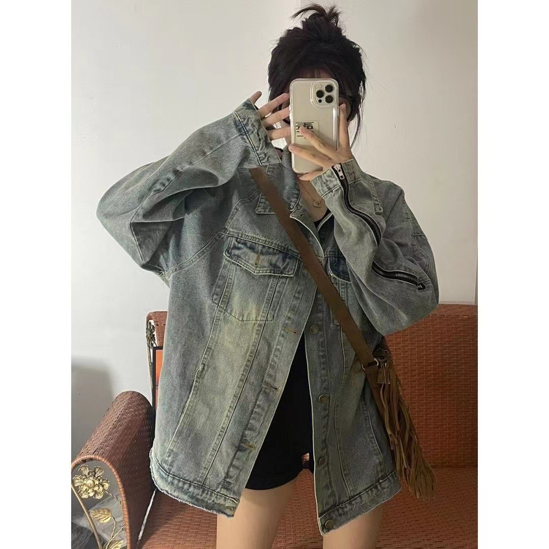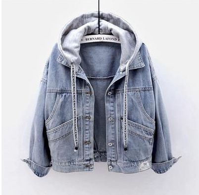 데님 코트 여성의 봄과 가을 2024 새로운 짧은 한국식 긴팔 슬림 핏 후드 자켓스토어 가기