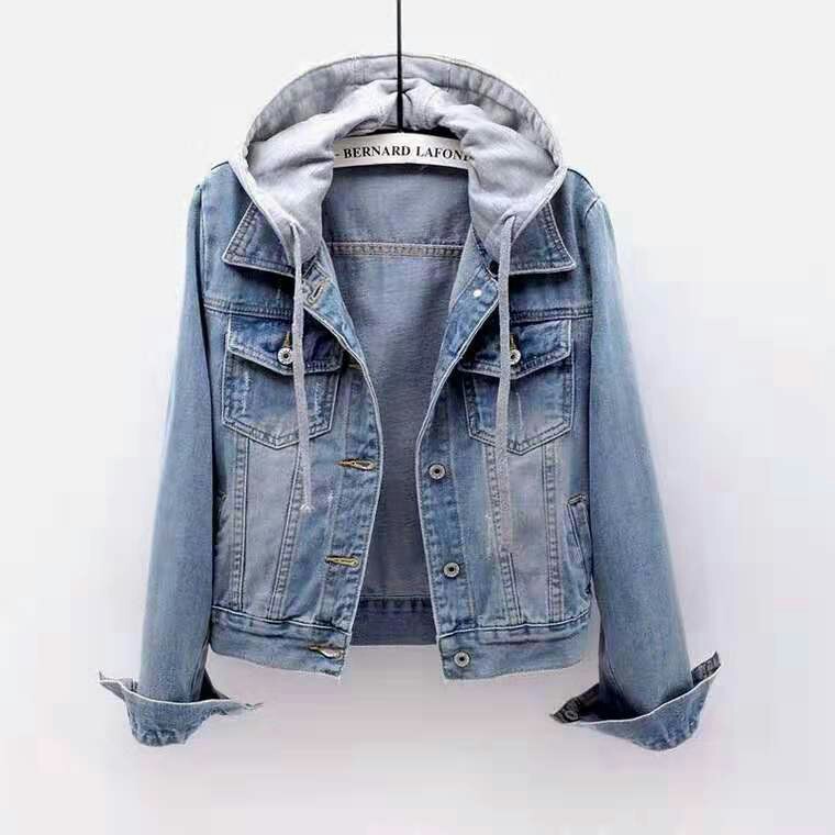 데님 코트 여성의 봄과 가을 2024 새로운 짧은 한국식 긴팔 슬림 핏 후드 자켓
