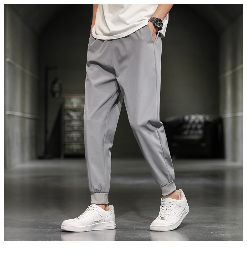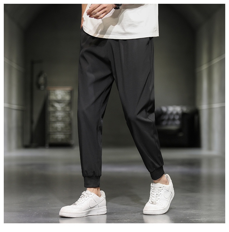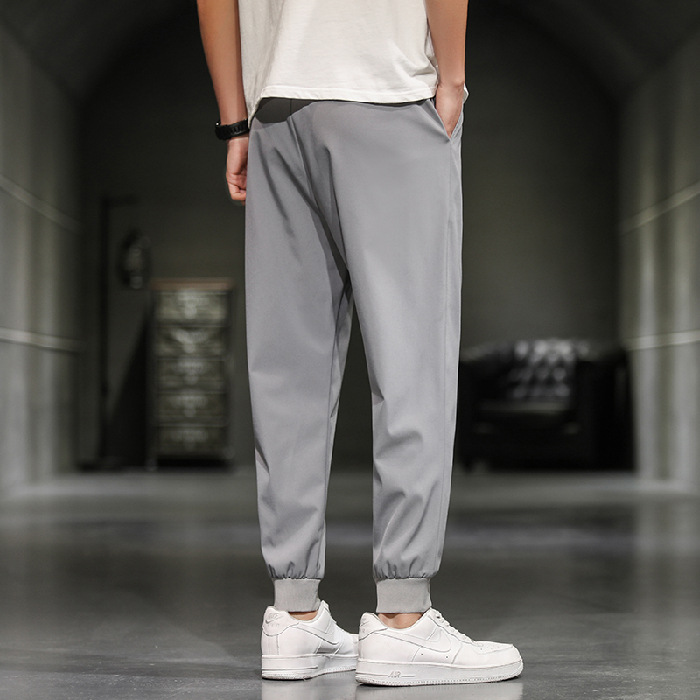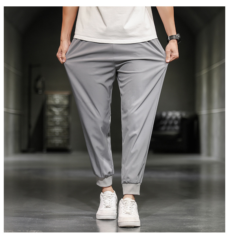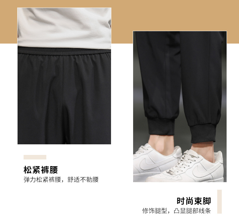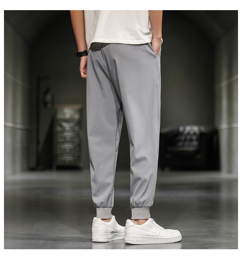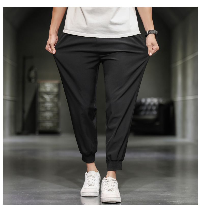 남성용 봄여름 한국 스타일 다용도 아이스 실크 에어컨 대형 사이즈 스트레이트 스포츠 9부 캐주얼 롱 팬츠 2111 #