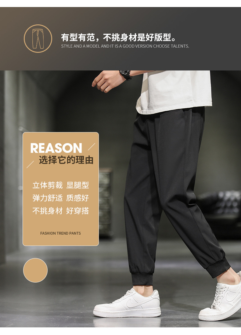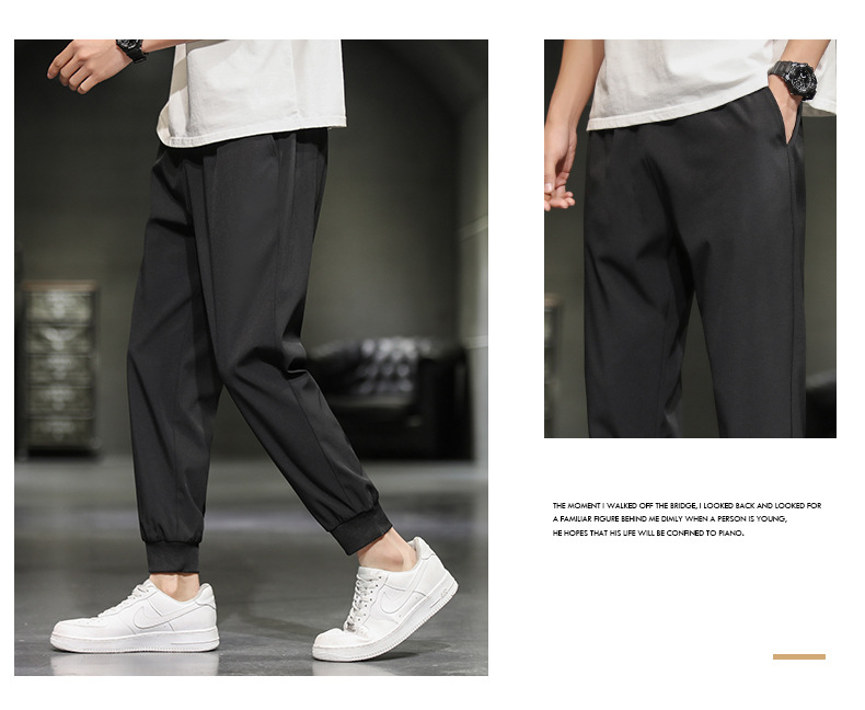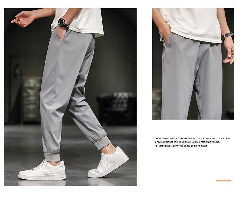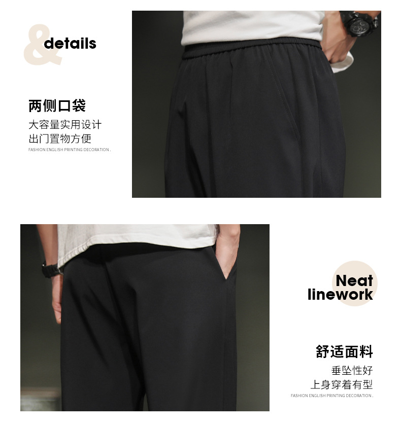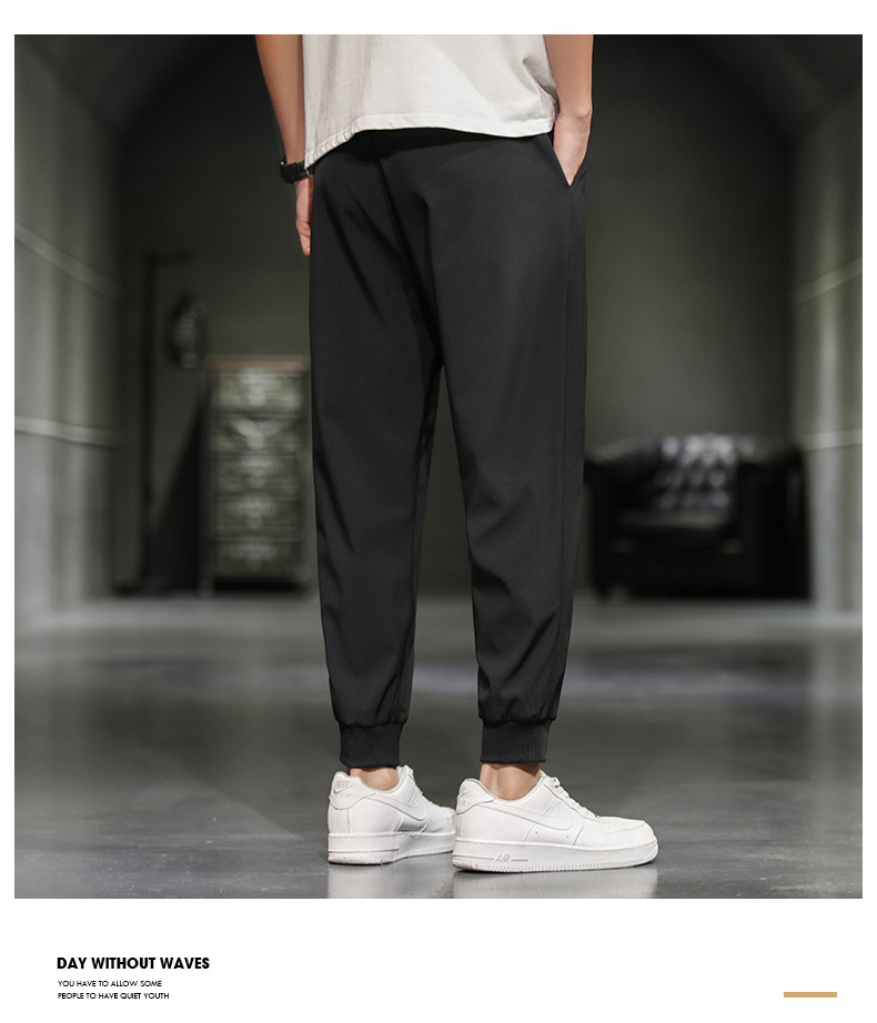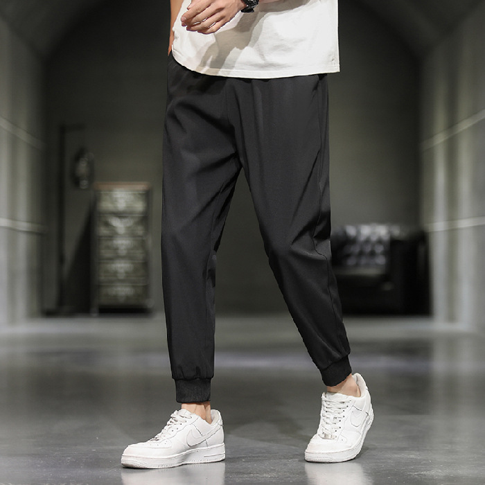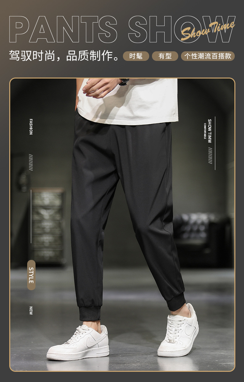 남성용 봄여름 한국 스타일 다용도 아이스 실크 에어컨 대형 사이즈 스트레이트 스포츠 9부 캐주얼 롱 팬츠 2111 #