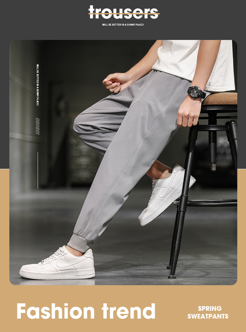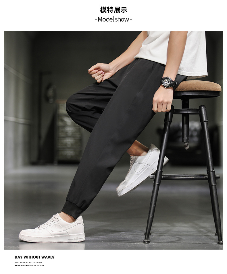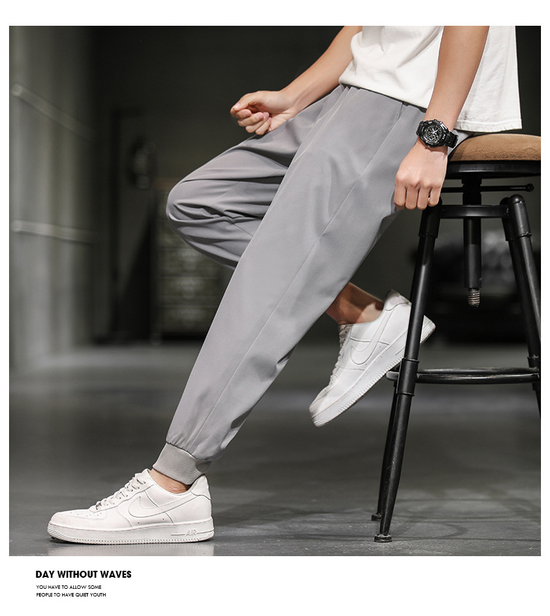 남성용 봄여름 한국 스타일 다용도 아이스 실크 에어컨 대형 사이즈 스트레이트 스포츠 9부 캐주얼 롱 팬츠 2111 #스토어 가기