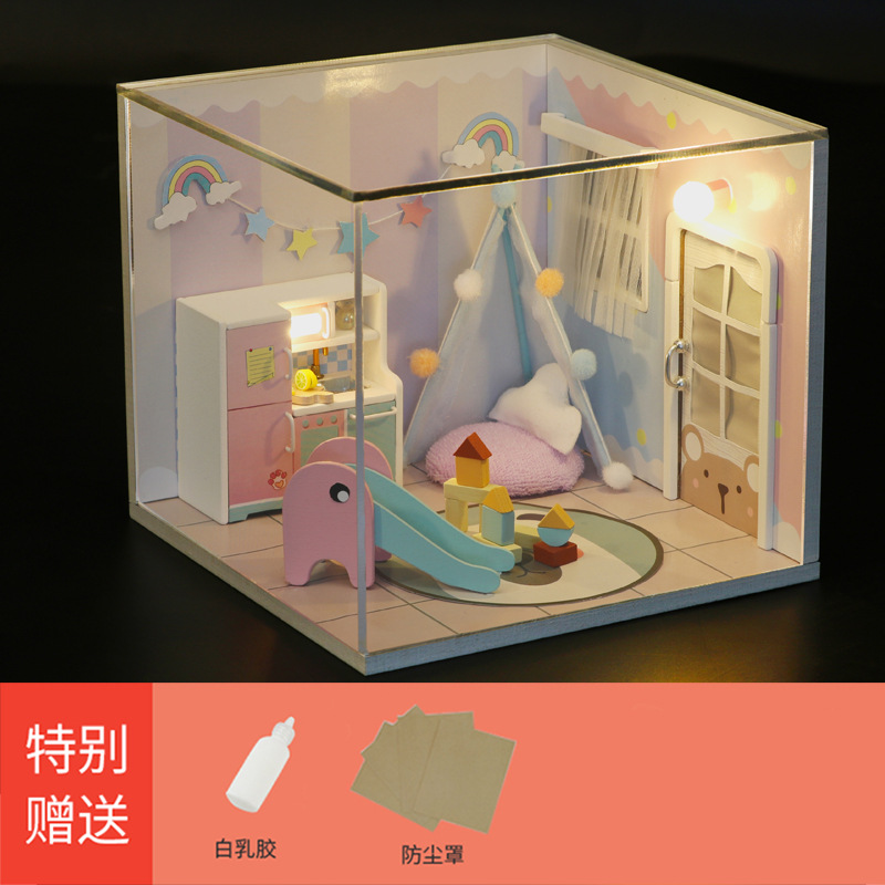 홍다 조립식 DIY 소형 주택 모델, 교육용 인형의 집, 조립형 장난감, 수제 DIY 선물, 미니어처 장식품