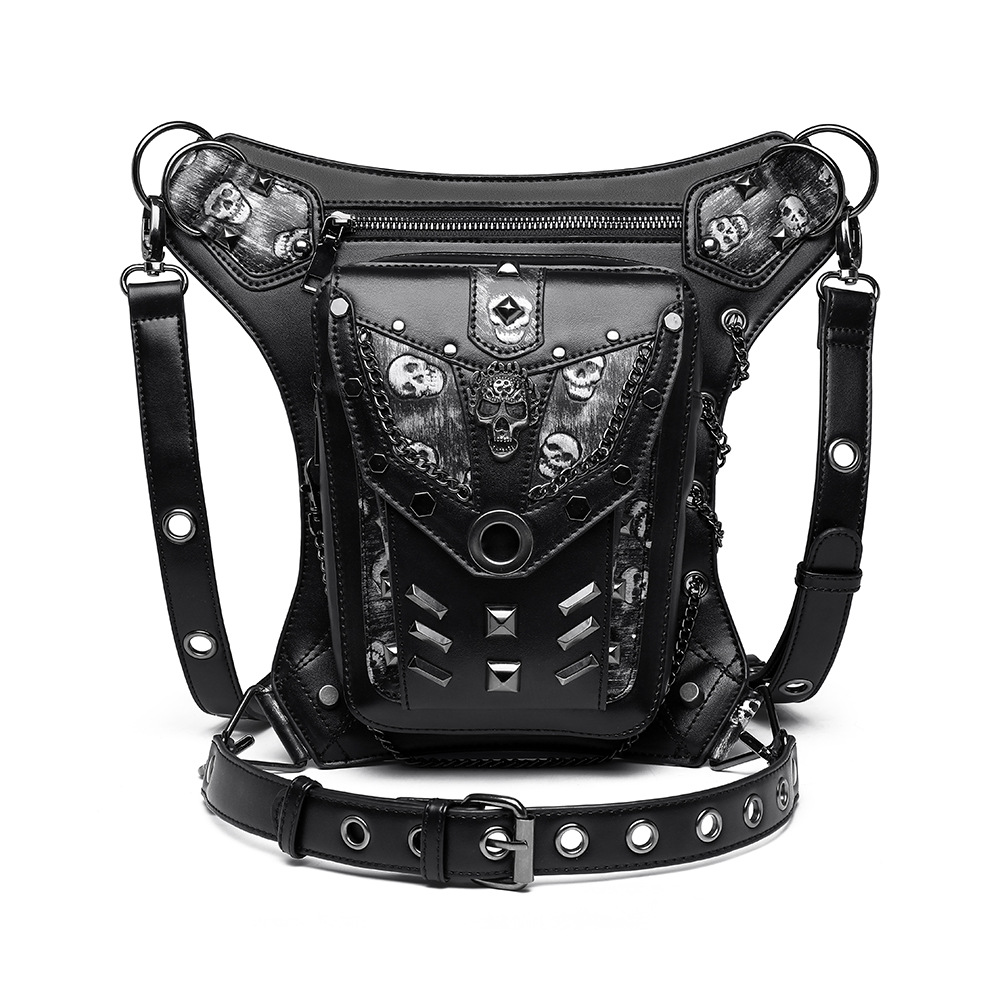 아마존 새 가방 여성용 유럽 및 미국 펑크 체인 백 해골 오토바이 여성용 숄더 크로스 바디 백 남성용 허리 가방