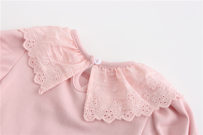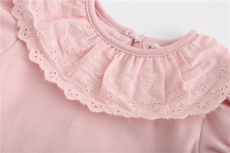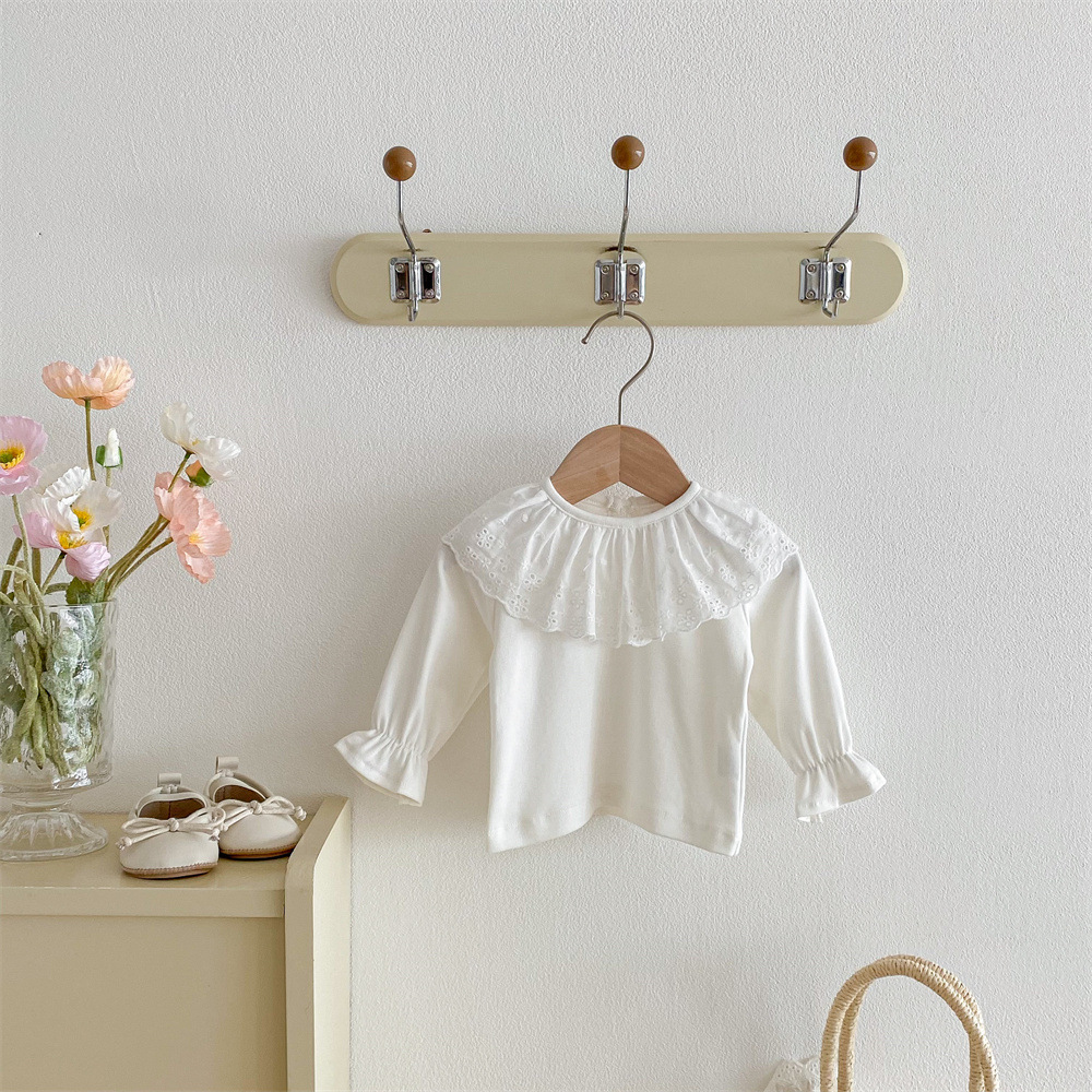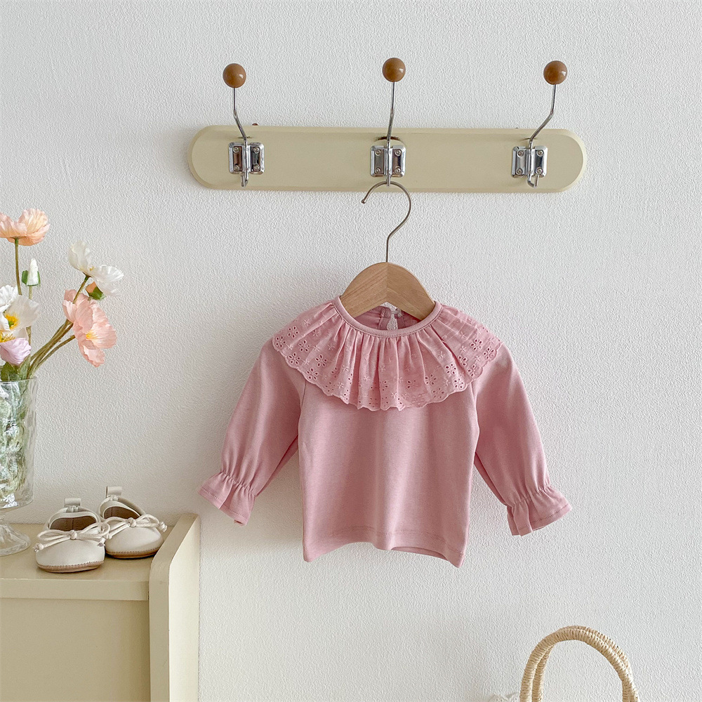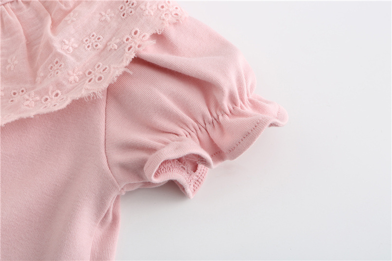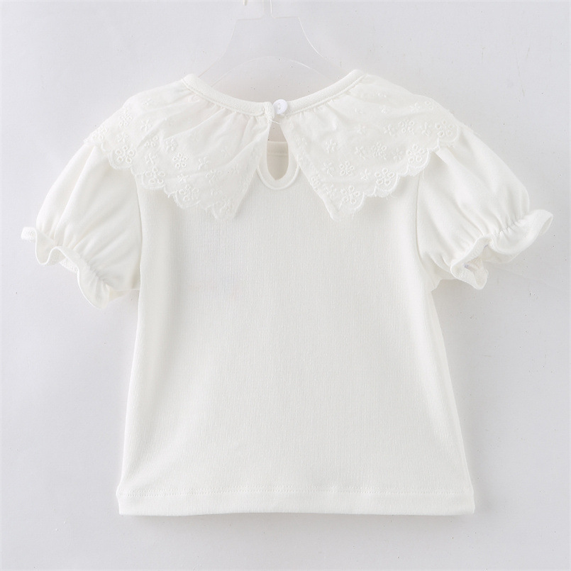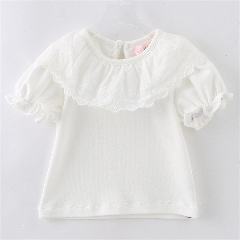 아동복 여름 달콤한 소녀 레이스 칼라 티셔츠 반팔 한국 스타일 어린이 상의 신생아 아기 옷