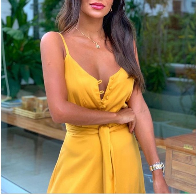 2025년 여름 신상 유럽 및 미국 여성복 개성 있는 버튼 V넥 스플라이싱 슬립 드레스스토어 가기