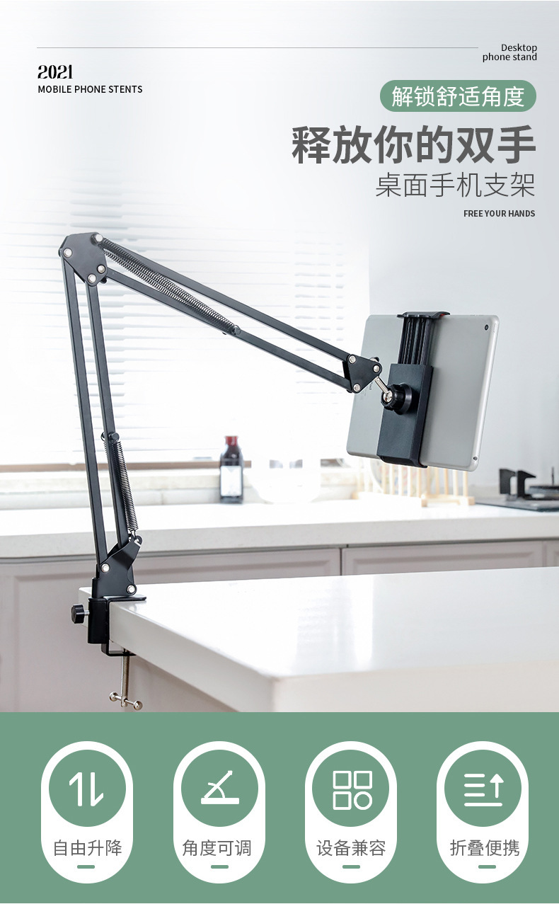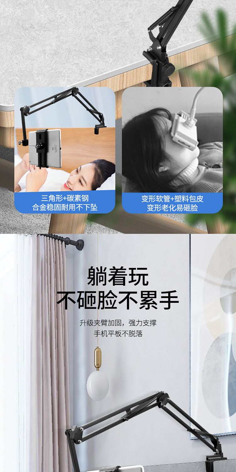 금속 클립 캔틸레버 브래킷 휴대 전화 태블릿 게으른 라이브 데스크탑 침대 사이드 체이싱 플레이 회전 접이식 캔틸레버 브래킷