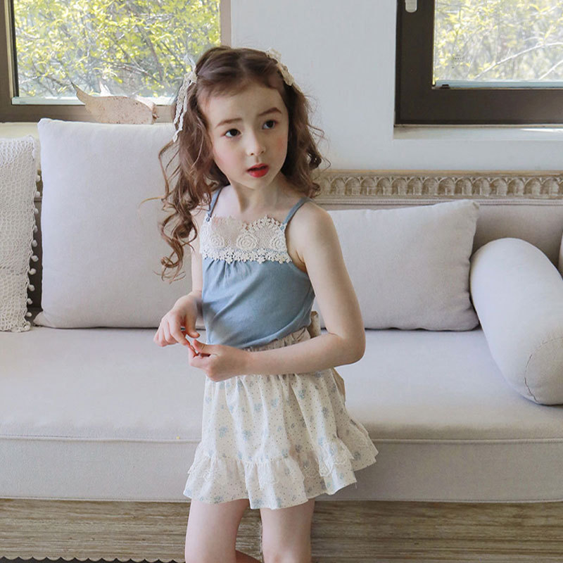 2025 여름 소녀 조끼 딸기 샬론 아동 의류 아동 소녀 레이스 캐미솔 재고 있음