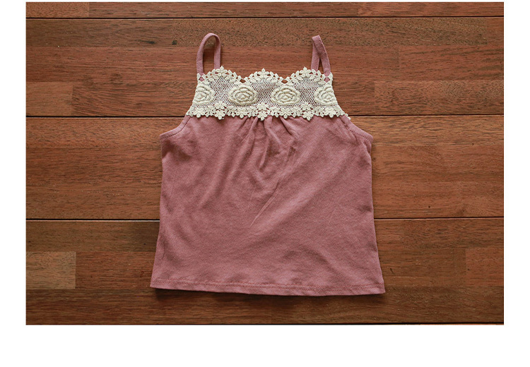 2025 여름 소녀 조끼 딸기 샬론 아동 의류 아동 소녀 레이스 캐미솔 재고 있음스토어 가기