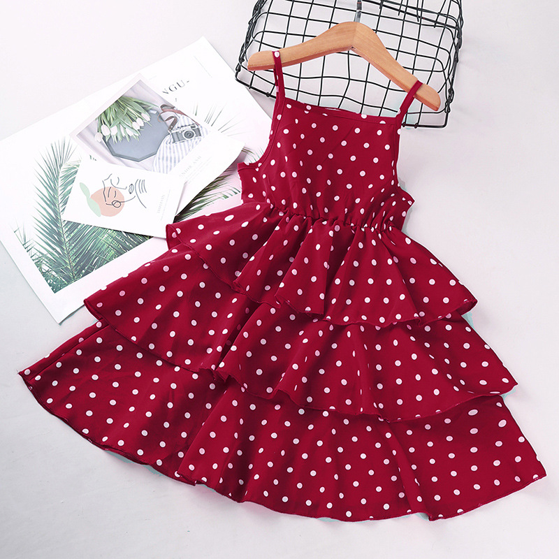 여자 드레스 여름 아동복 2025 유럽과 미국의 새로운 스타일 중대형 어린이 스타일 폴카 도트 공주 서스펜더 스커트 도매