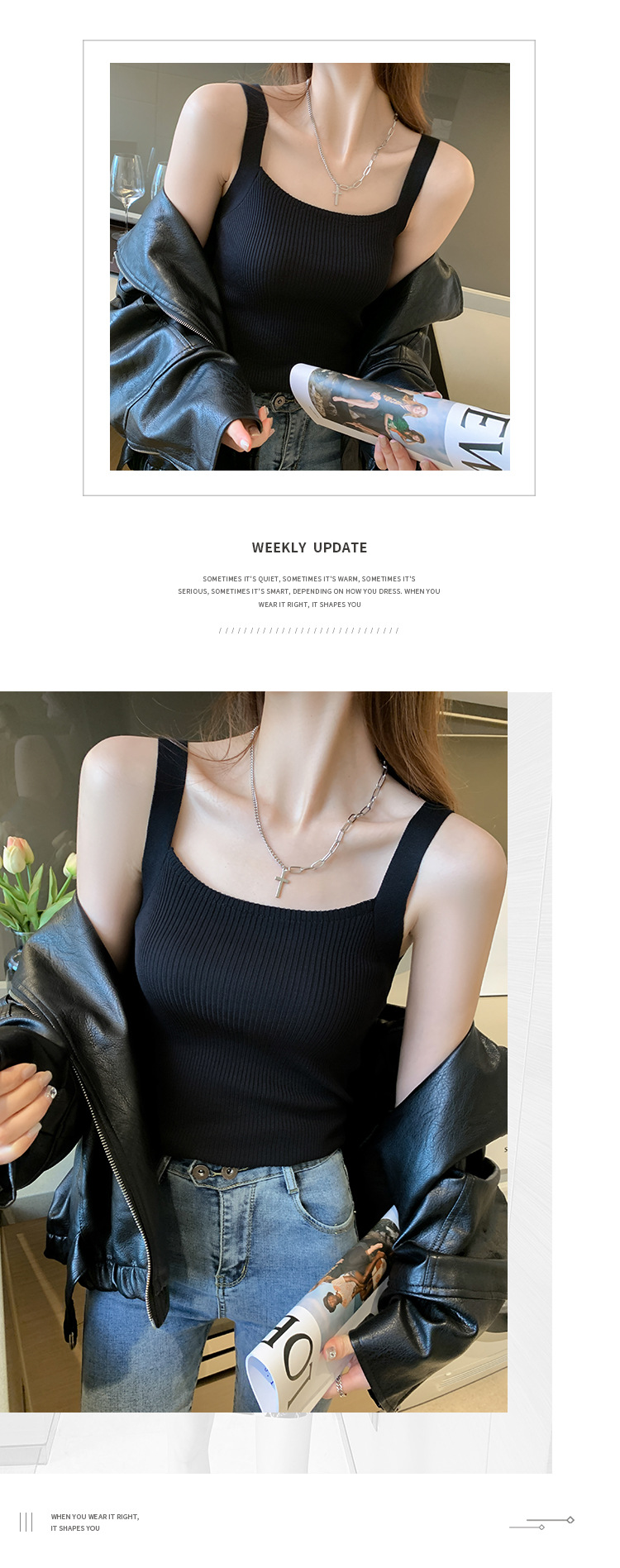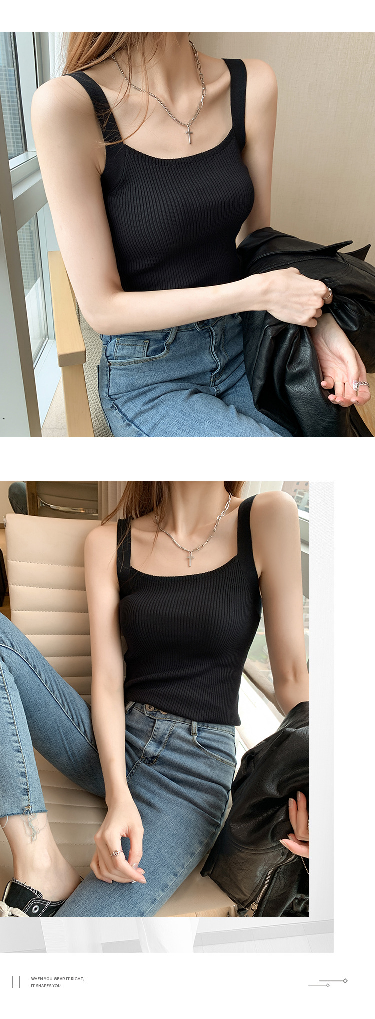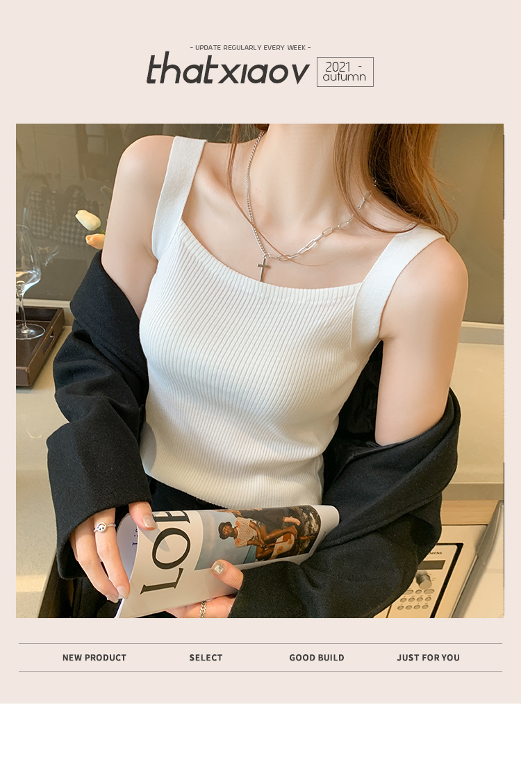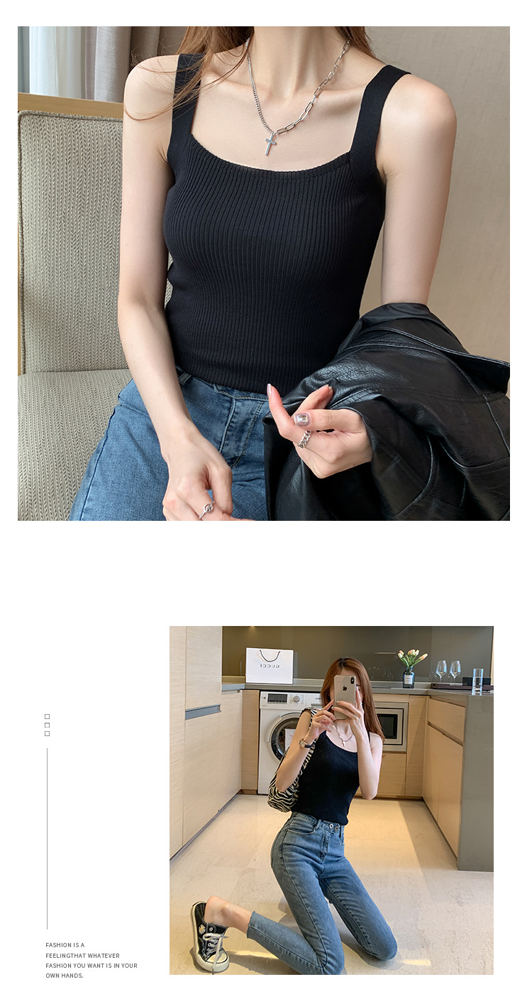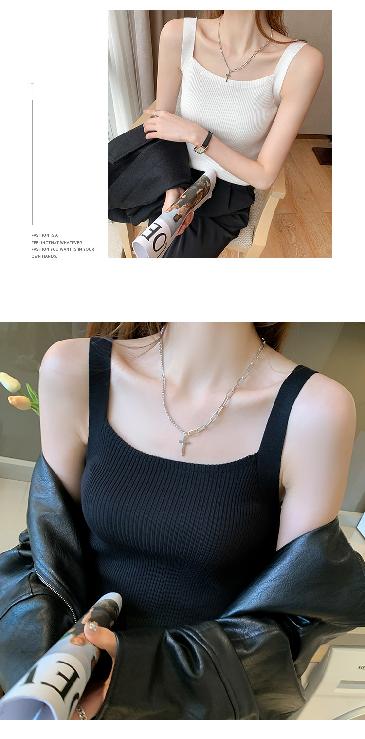 플러스 사이즈 니트 캐미솔 여자의 여름 민소매 탑 디자인 감각 틈새 아우터 아이스 실크 베이스와 작은 세트스토어 가기