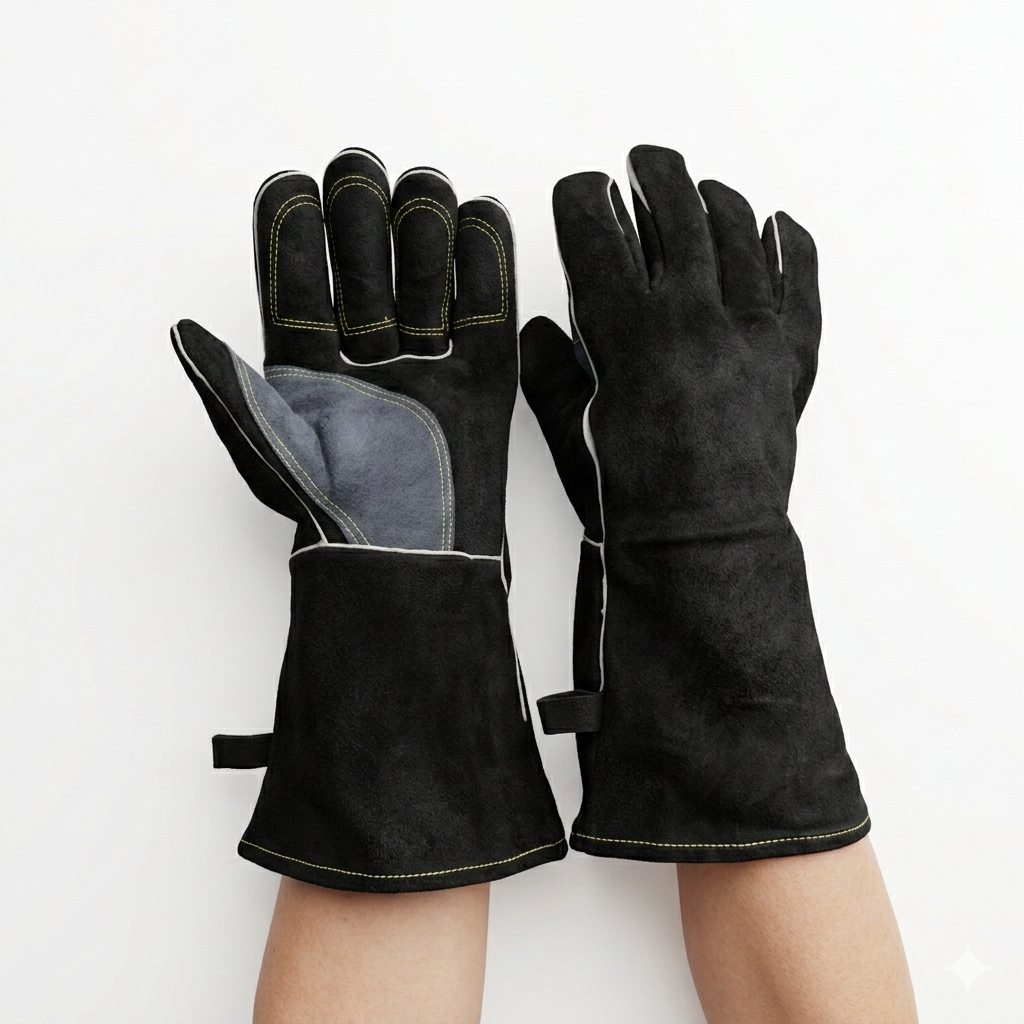 35cm 소가죽 알루미늄 호일 강화 및 두꺼워진 다층 용접 장갑, 미끄럼 방지, 절단 방지, 고온 내성, 보온 기능, 용접공 장갑 도매 아크형