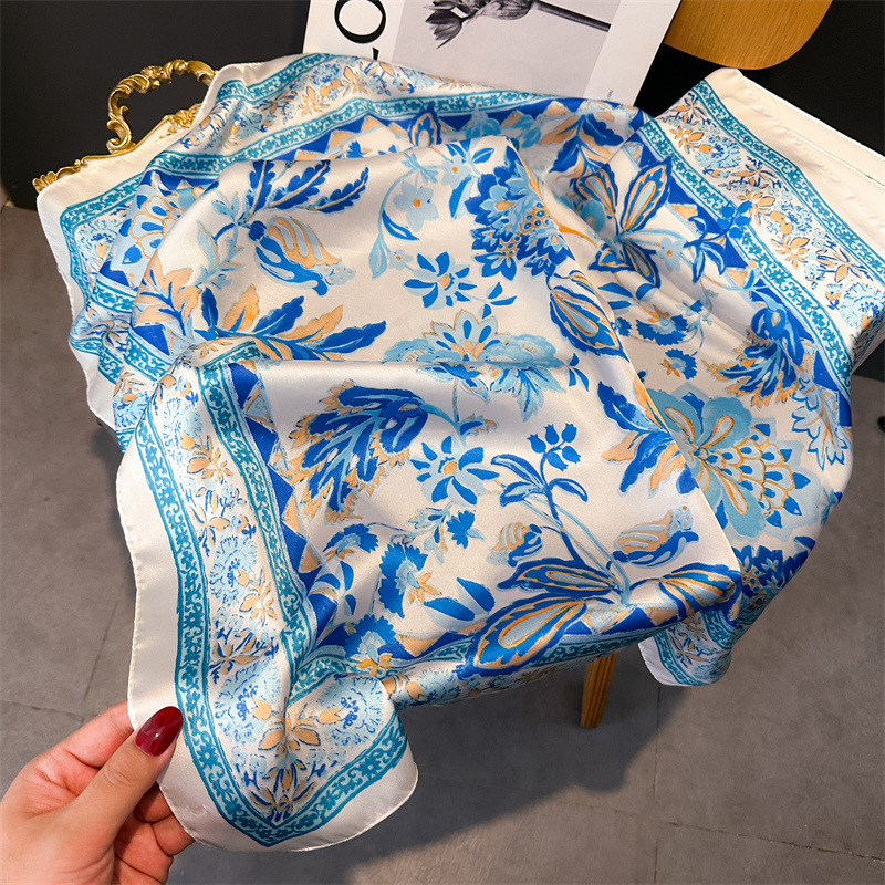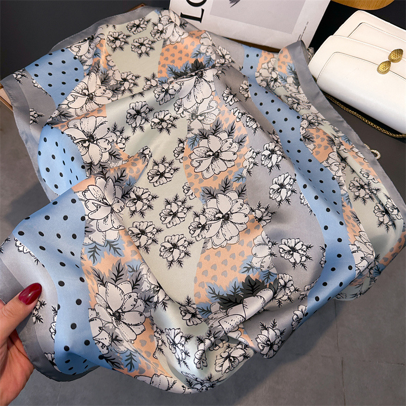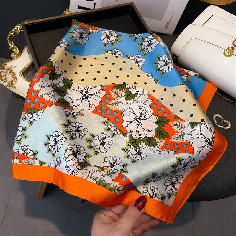 기질 웨이브 도트 스카프 여성의 봄과 여름 장식 스카프 스퀘어 스카프 70cm 모방 실크 스카프 한국식 올 매치 뉴 스타일