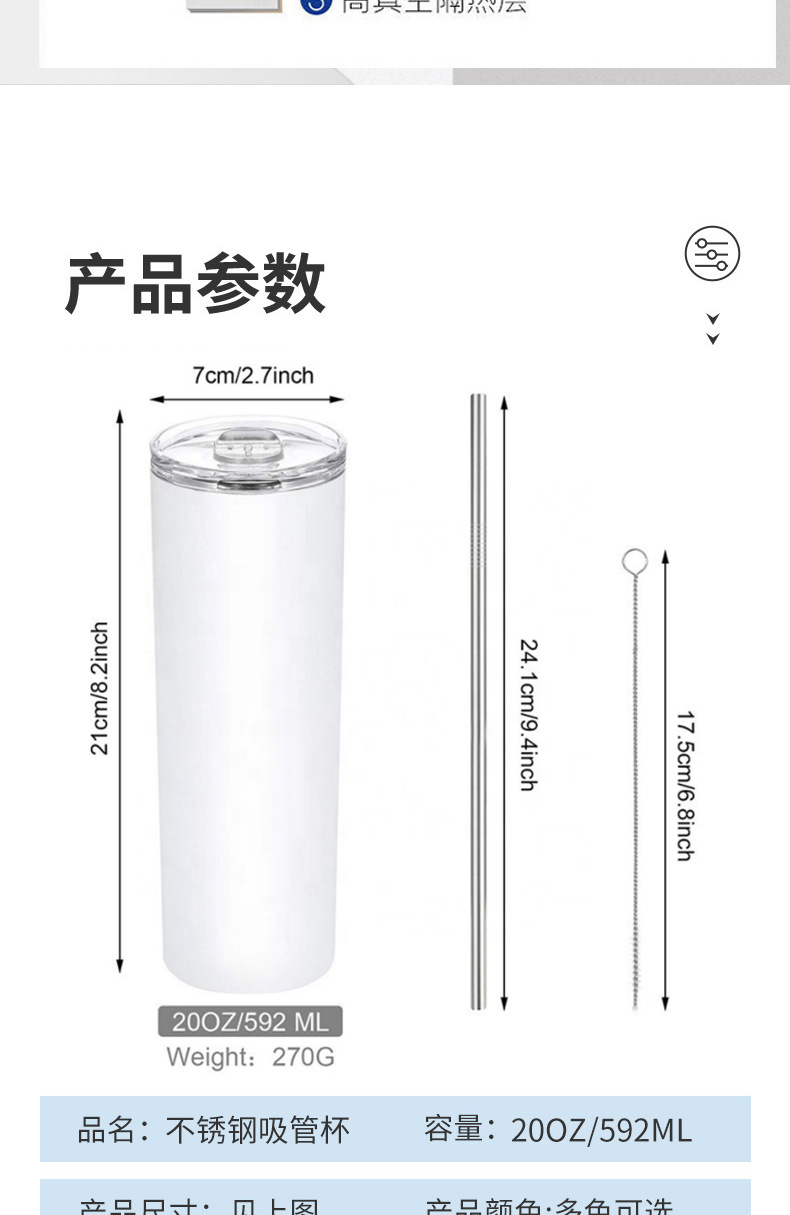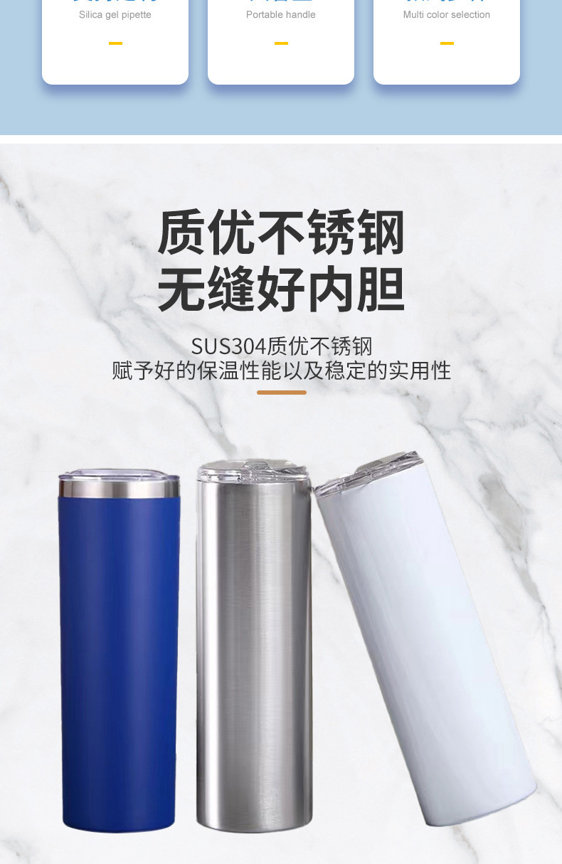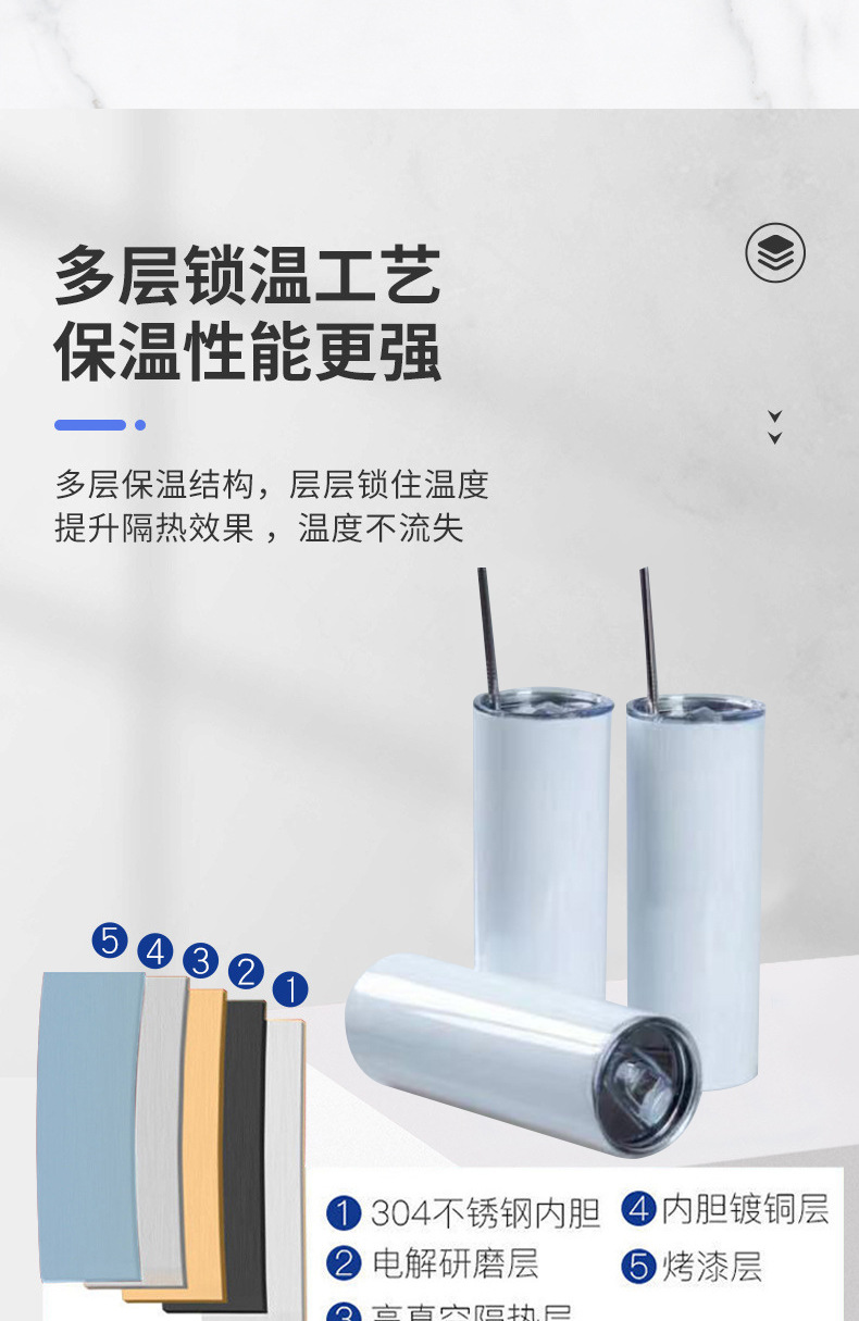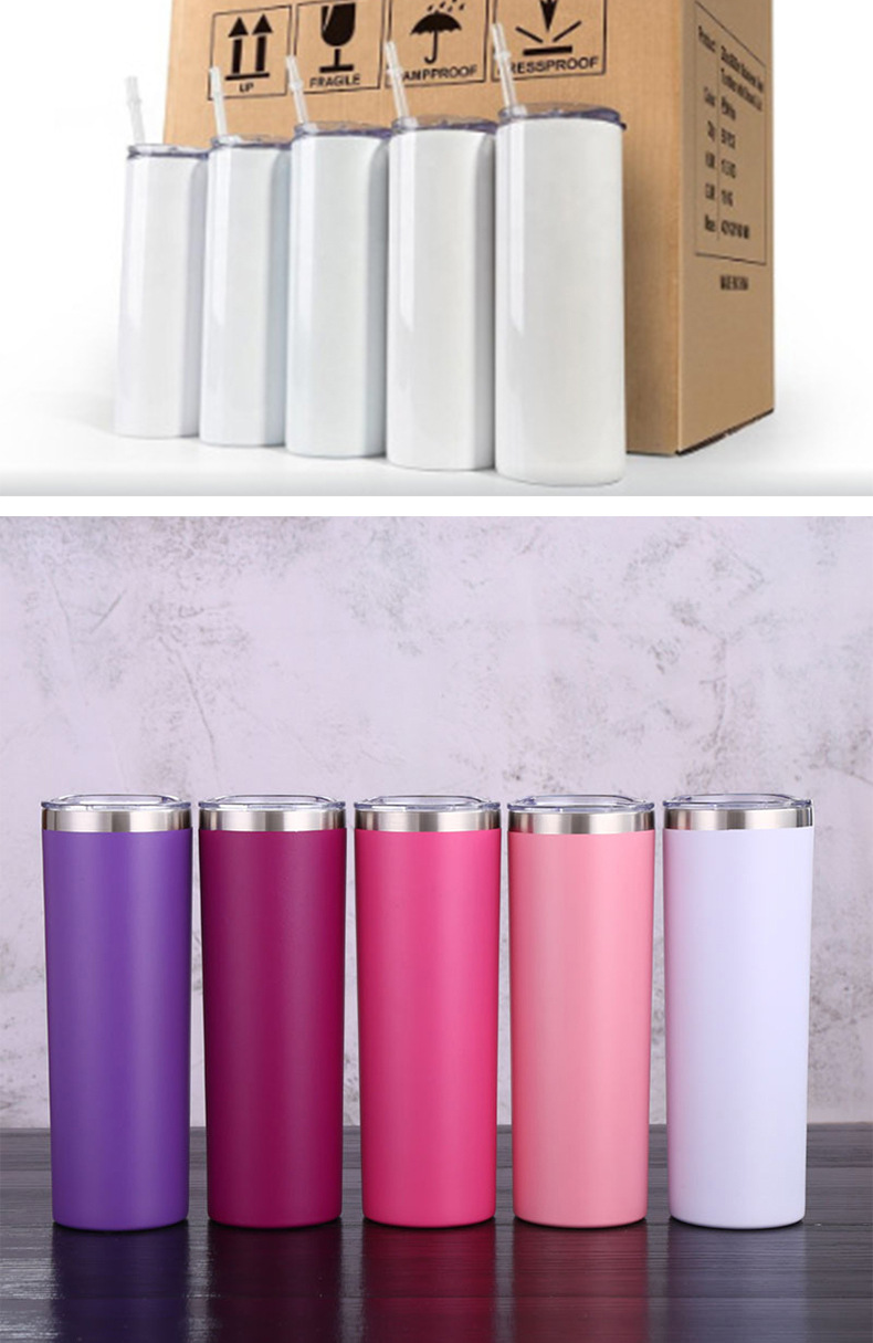 국경 간 승화 스트레이트 컵 SkinnyTumbler 스테인레스 스틸 밀짚 컵 인쇄 가능한 로고 절연 워터 컵