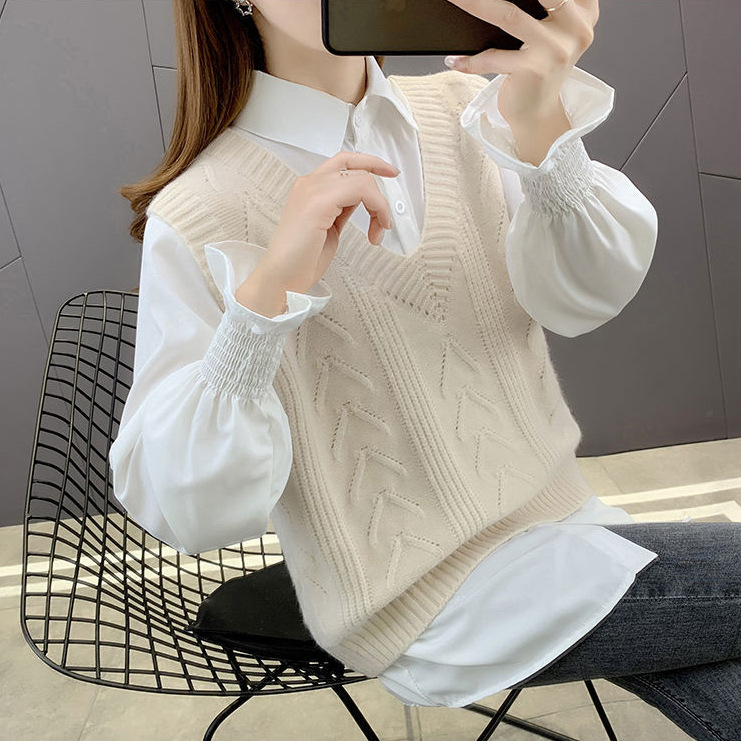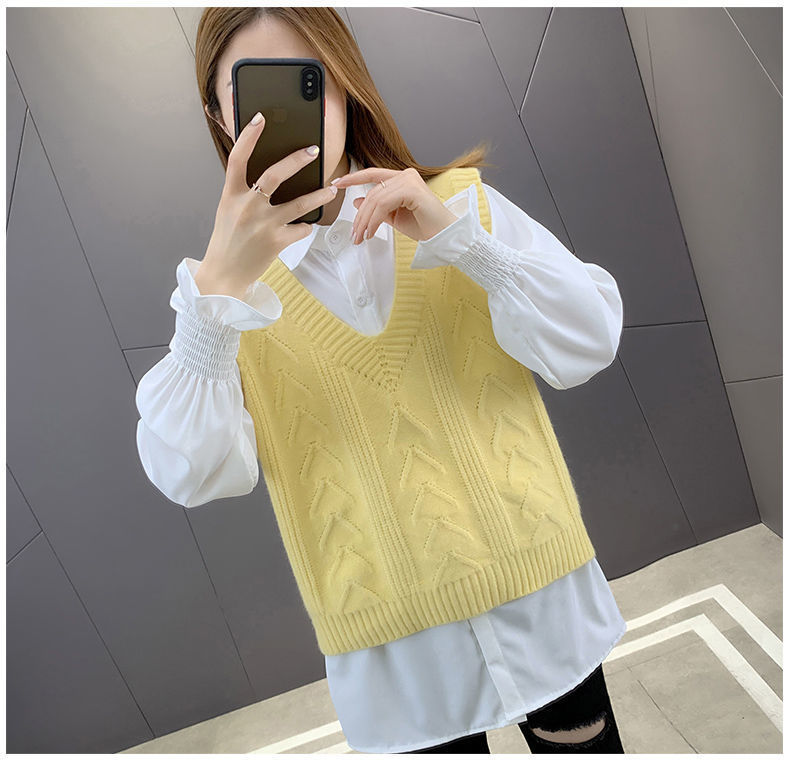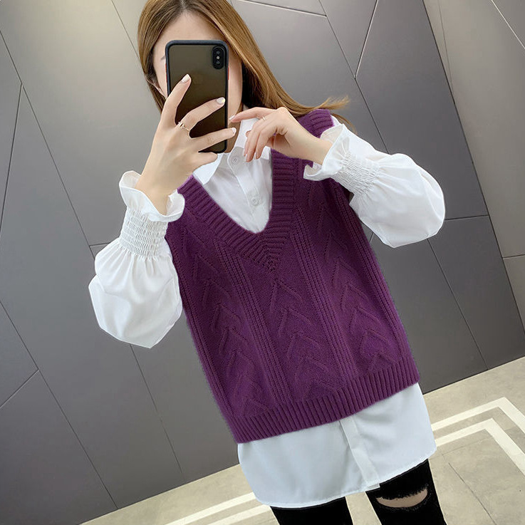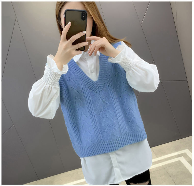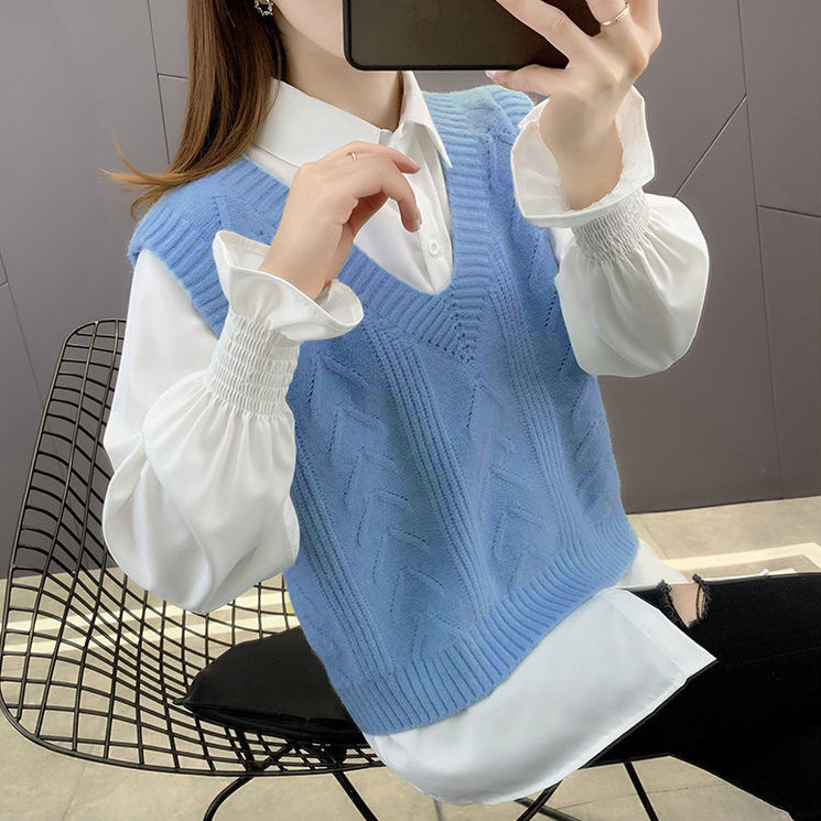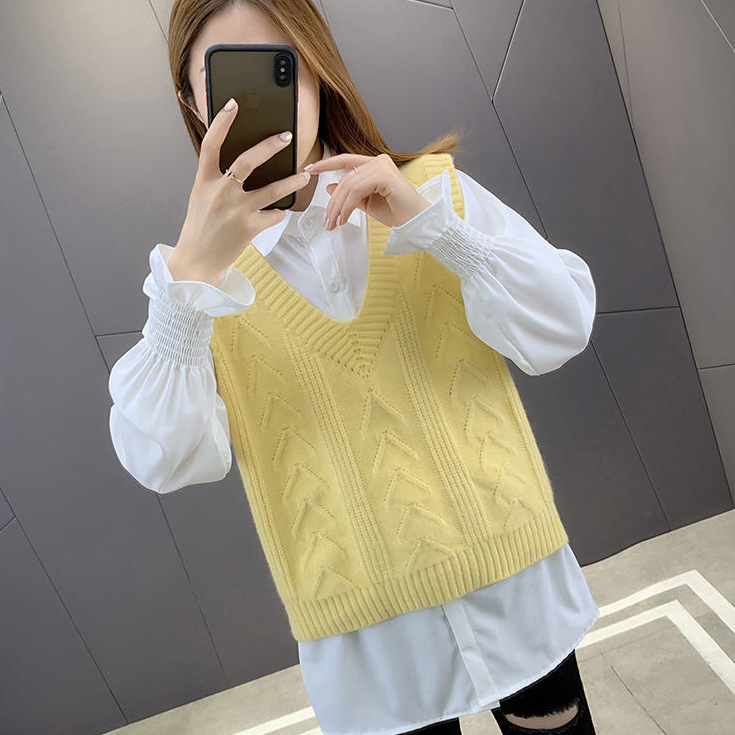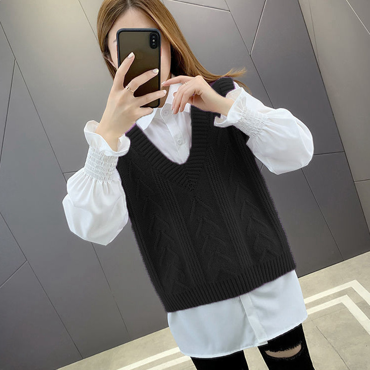 스웨터 조끼 니트 여성 상의 신상 봄 가을 한국 스타일 아우터 조끼 루즈핏 다용도 브이넥 풀오버 조끼스토어 가기