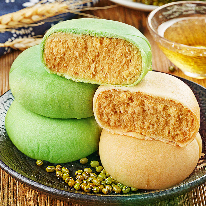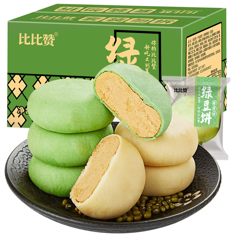 비비자 말차 녹콩 케이크 녹콩 케이크 빵 통 상자 아침 식사 음식 간식 인터넷 인기 레저 간식스토어 가기