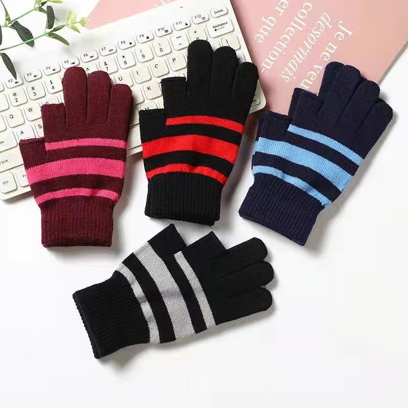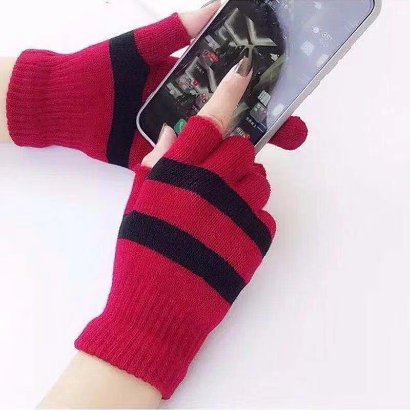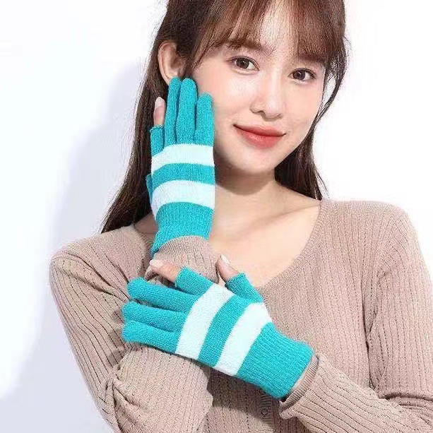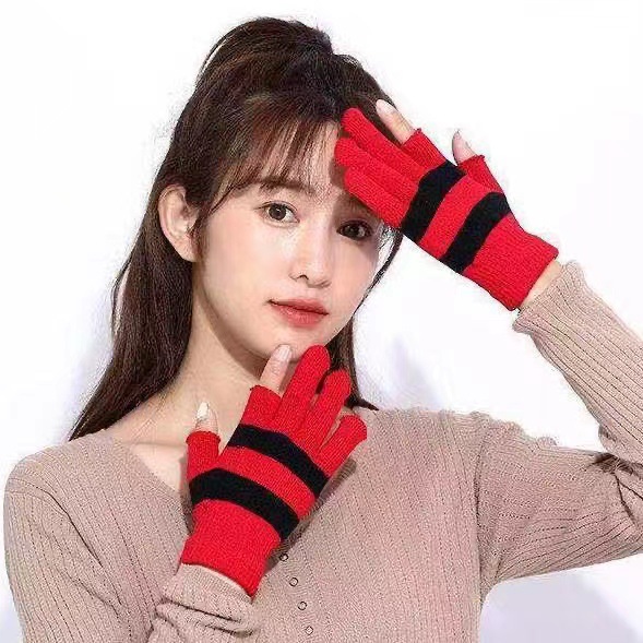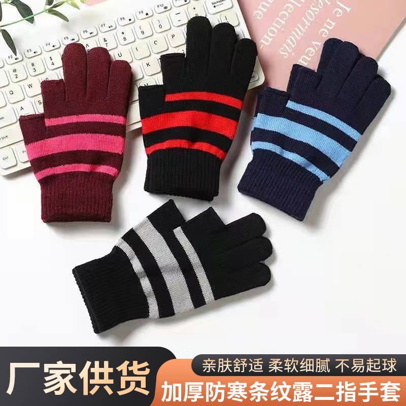 겨울 양모 스트라이프 반 손가락 장갑 학생 오픈 핑거 학습 따뜻한 장갑 두꺼운 방한 니트 장갑 도매