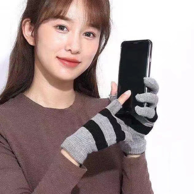 겨울 양모 스트라이프 반 손가락 장갑 학생 오픈 핑거 학습 따뜻한 장갑 두꺼운 방한 니트 장갑 도매스토어 가기