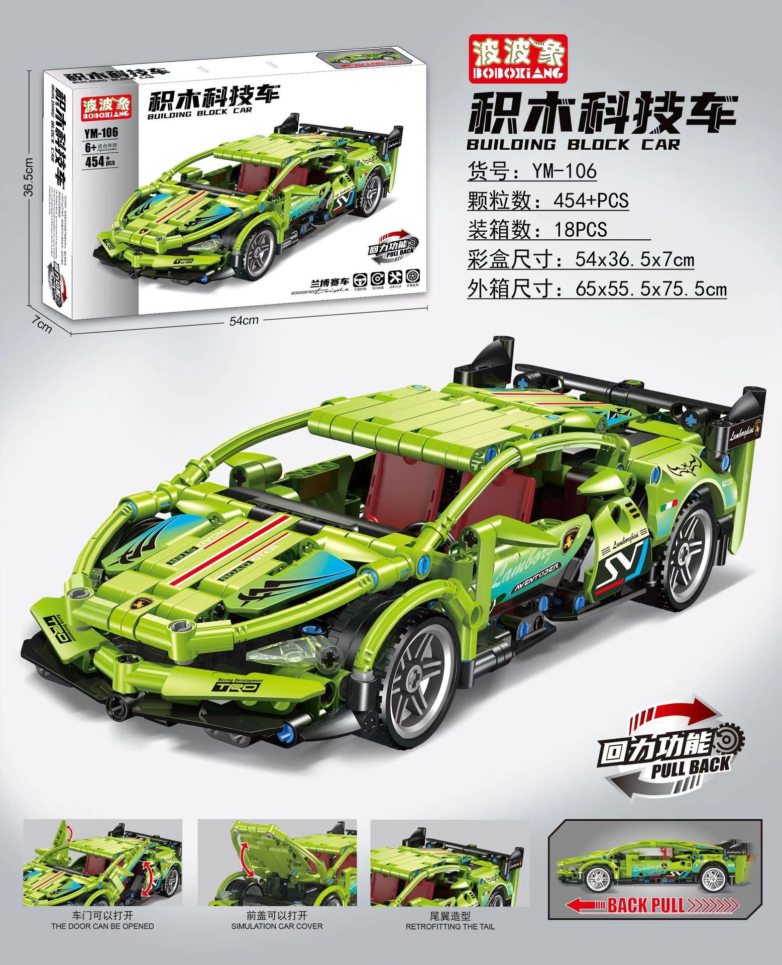 • 그린 람보르기니/풀백 기능 첨부 [55cm 휴대용 기프트 박스]]
